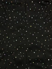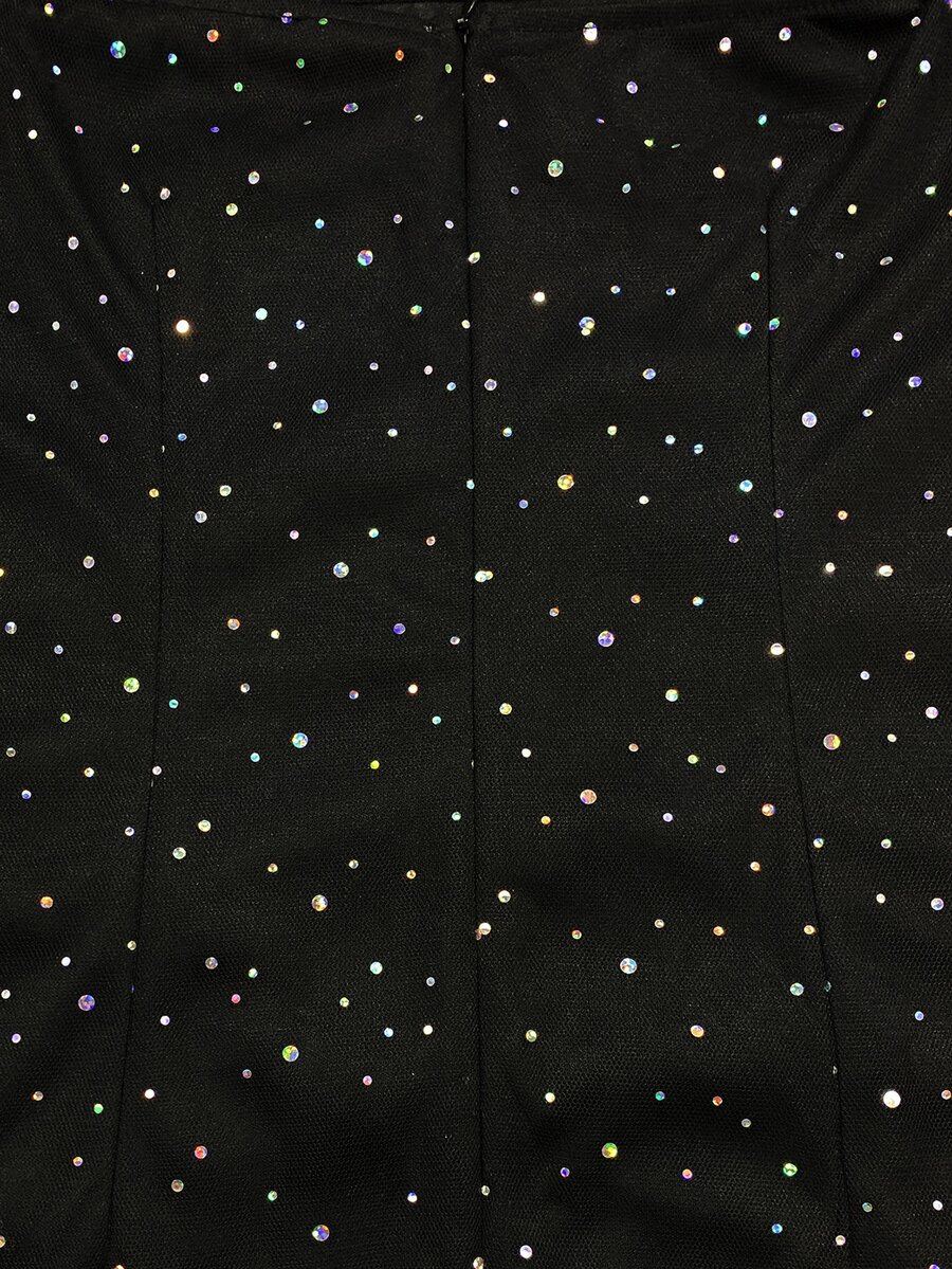 Double Crazy Off Shoulder Rhinestone Detail Mesh Bodycon Dress
