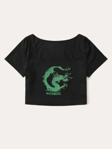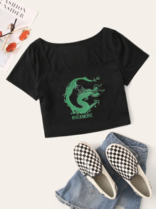 Dragon And Letter Embroidered Tee