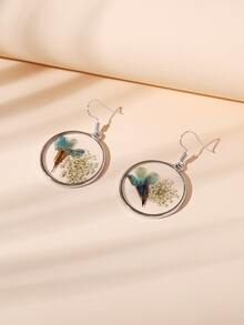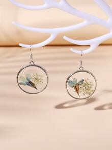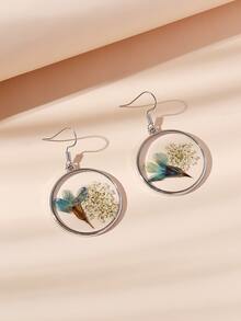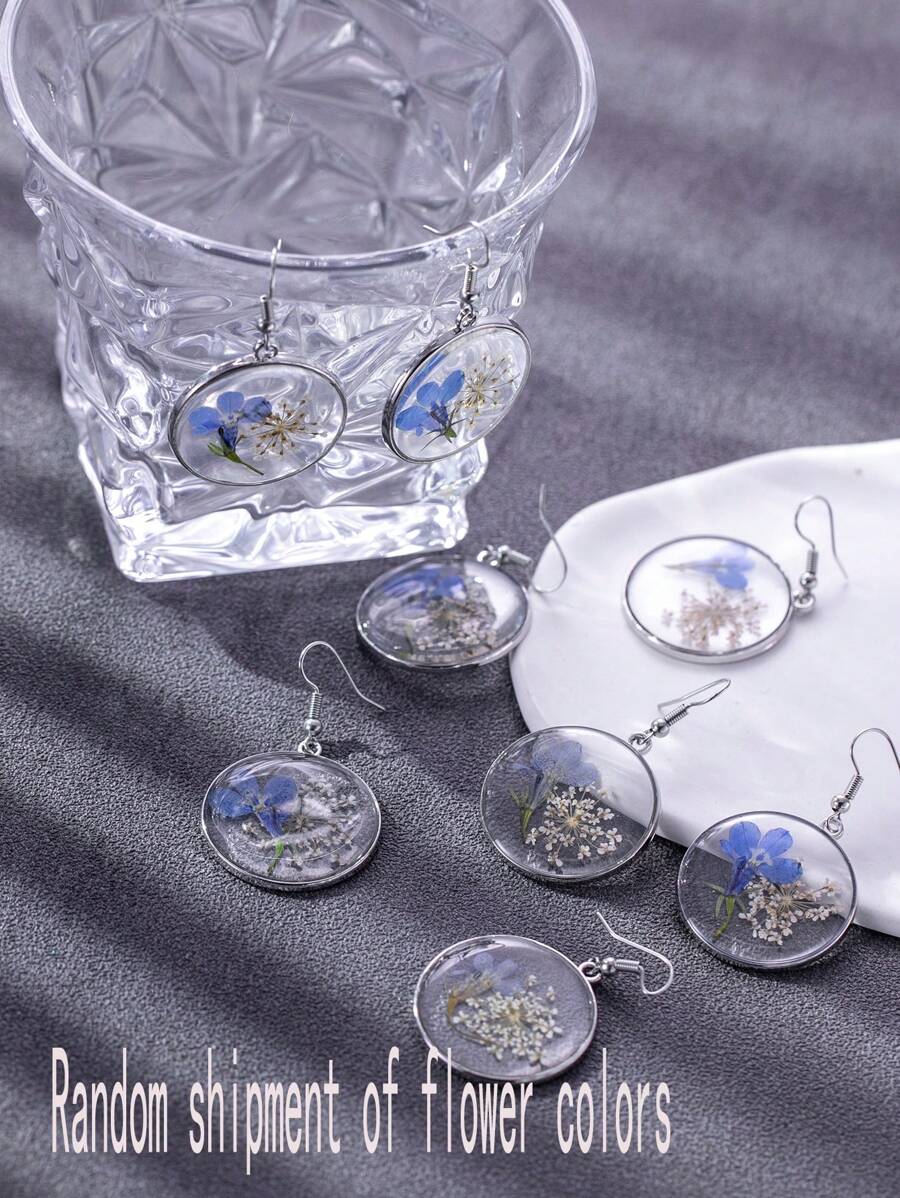1pair Simple Metal Diy Dried Flower & Plant Specimen Earrings (random Flower Color) For Women's Everyday Wear, Beach Party