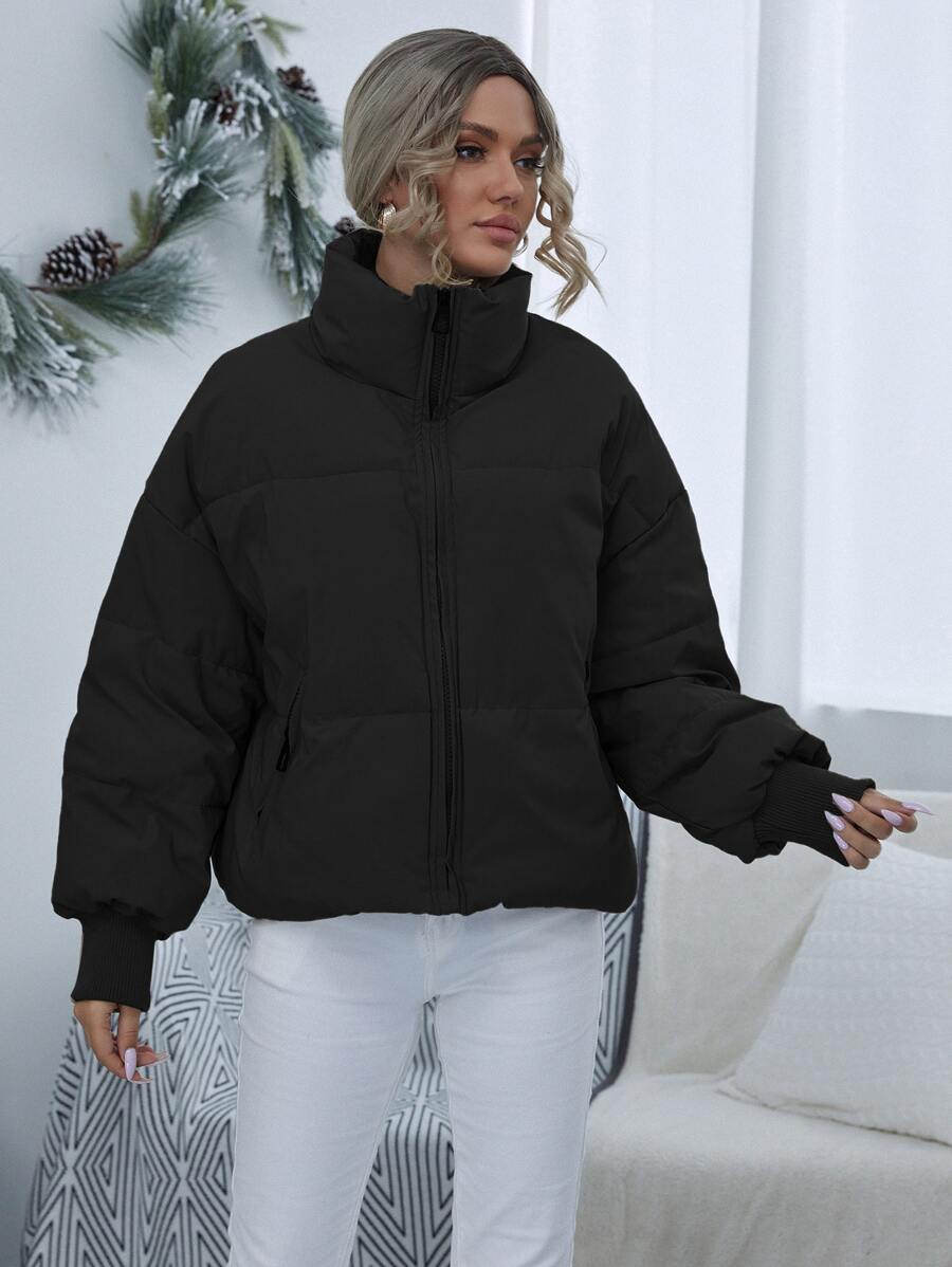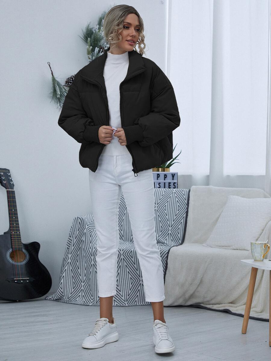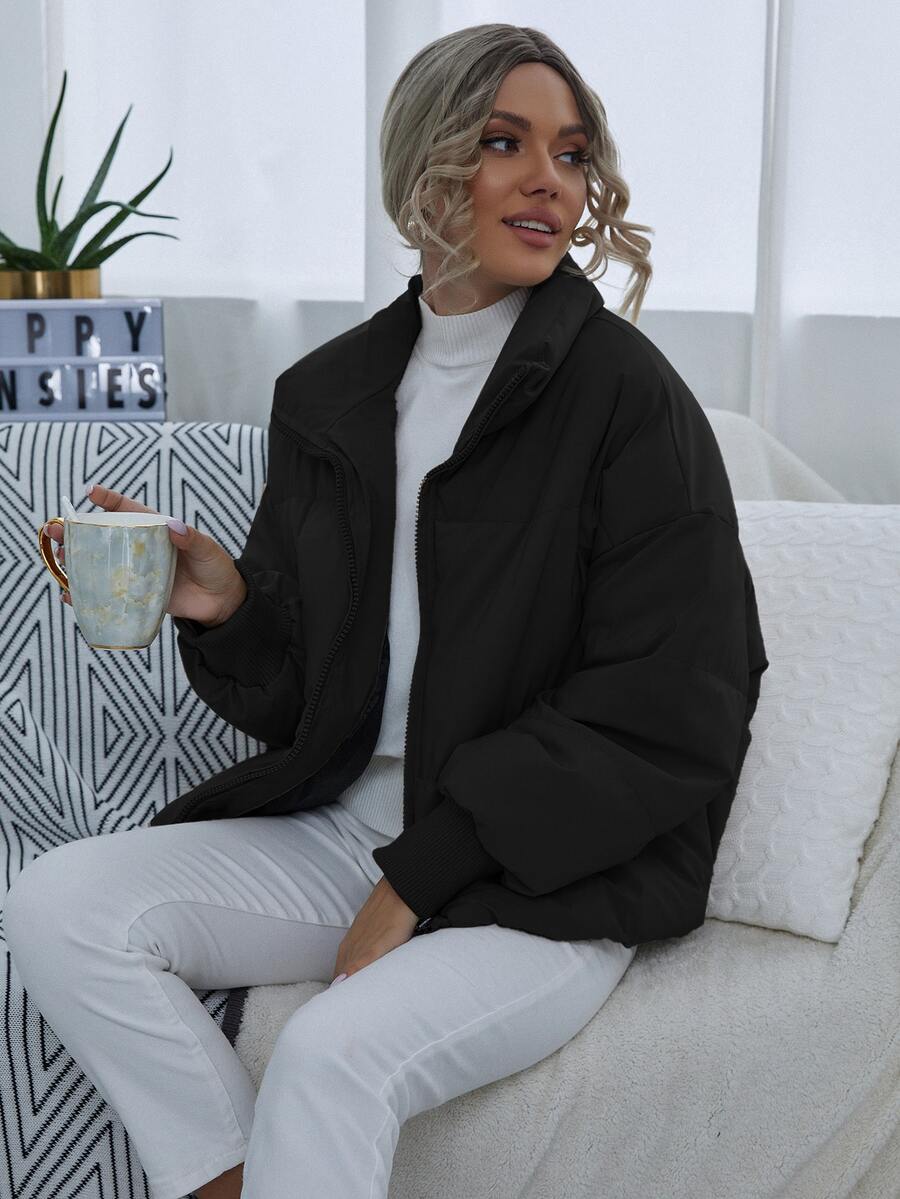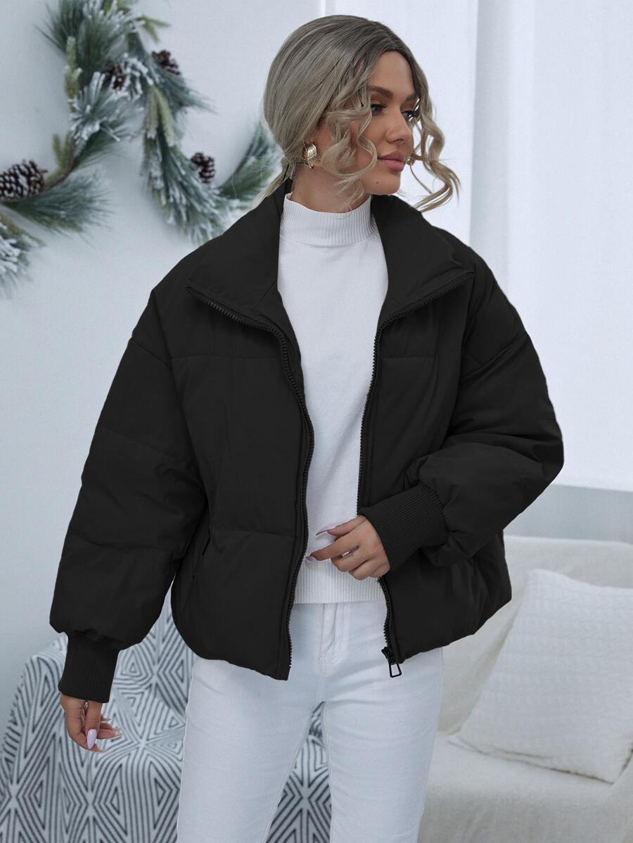 Drop Shoulder Zip Up Puffer Jacket Fall Winter Cloth For Women