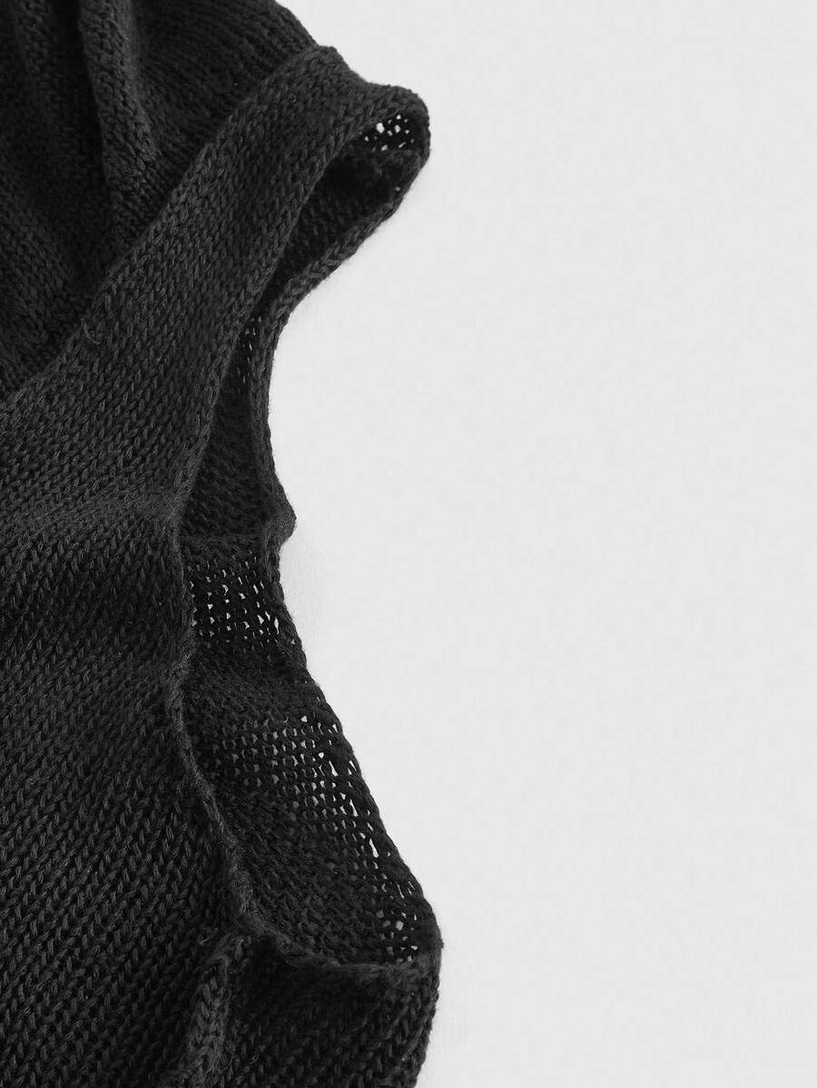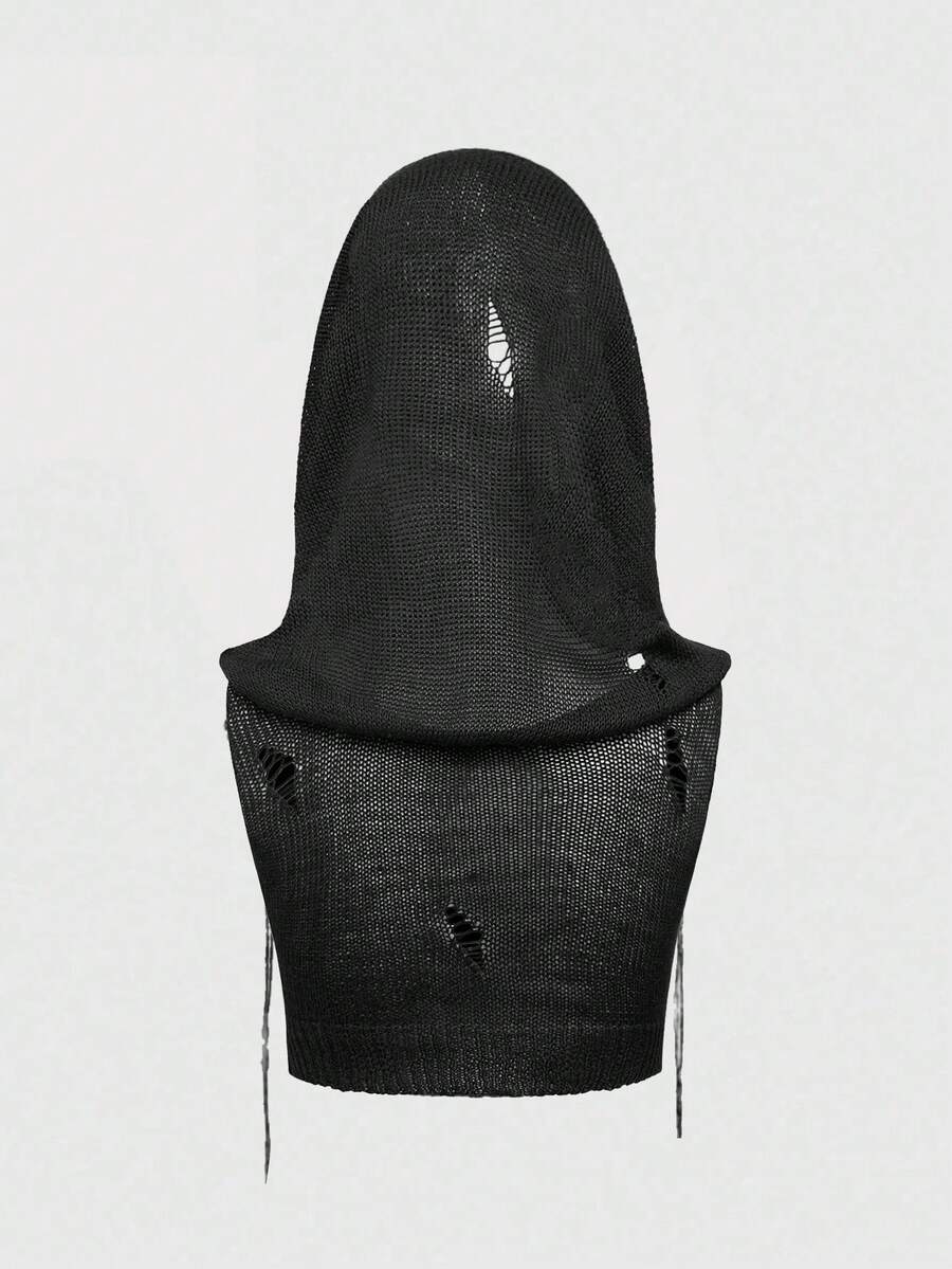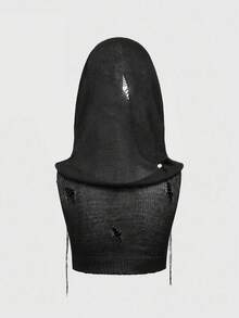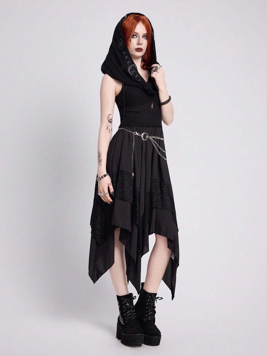 EDITION Boho Goth Style Mystical Embroidered Hooded Cropped Tasseled Knitted Sweater For Women