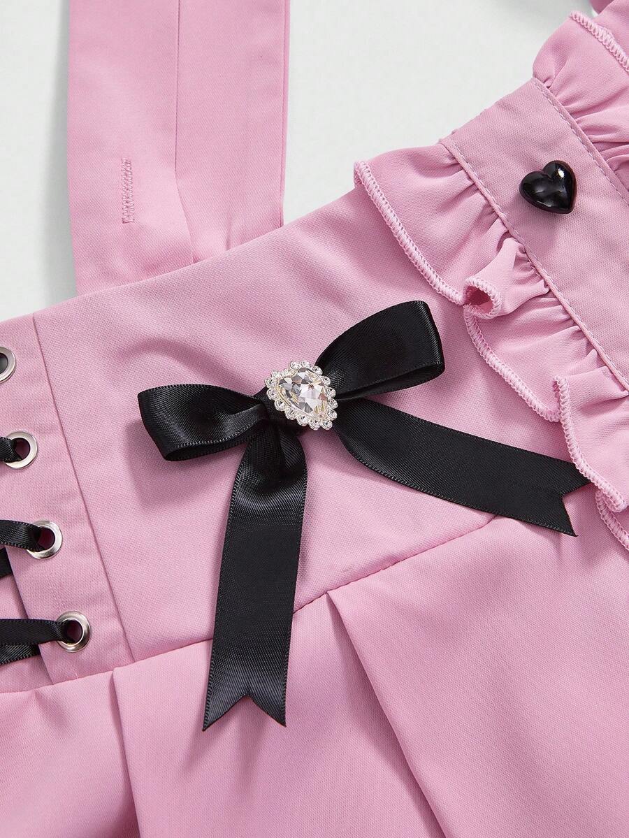 EDITION Plus Size Women's Cute Girly School Style Delicate Heart Diamond Bow Decor Pleated Suspender Skirt