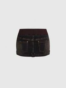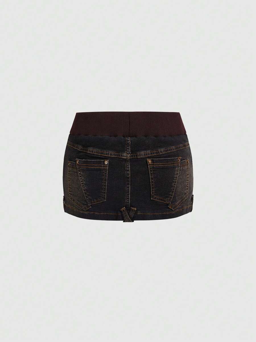 EDITION Retro Sexy Ultra Low Waist Knit Patchwork Milk Wrap Mini Skirt