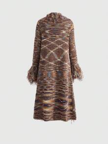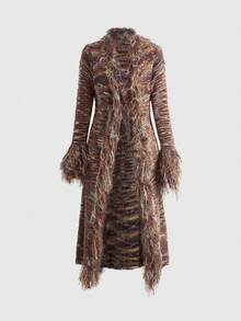 EDITION Women's Y2K Fringe Striped Long Sleeve Maxi Cardigan
