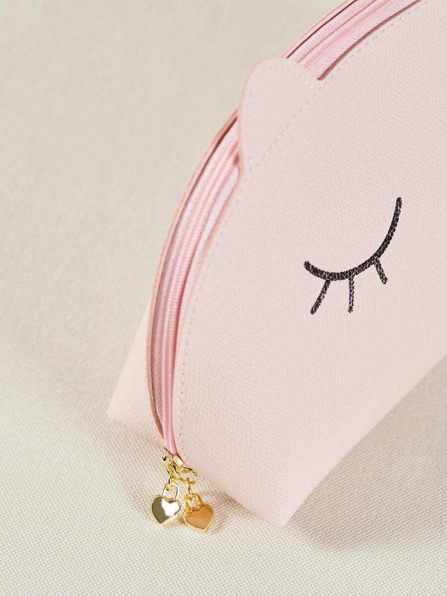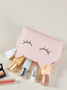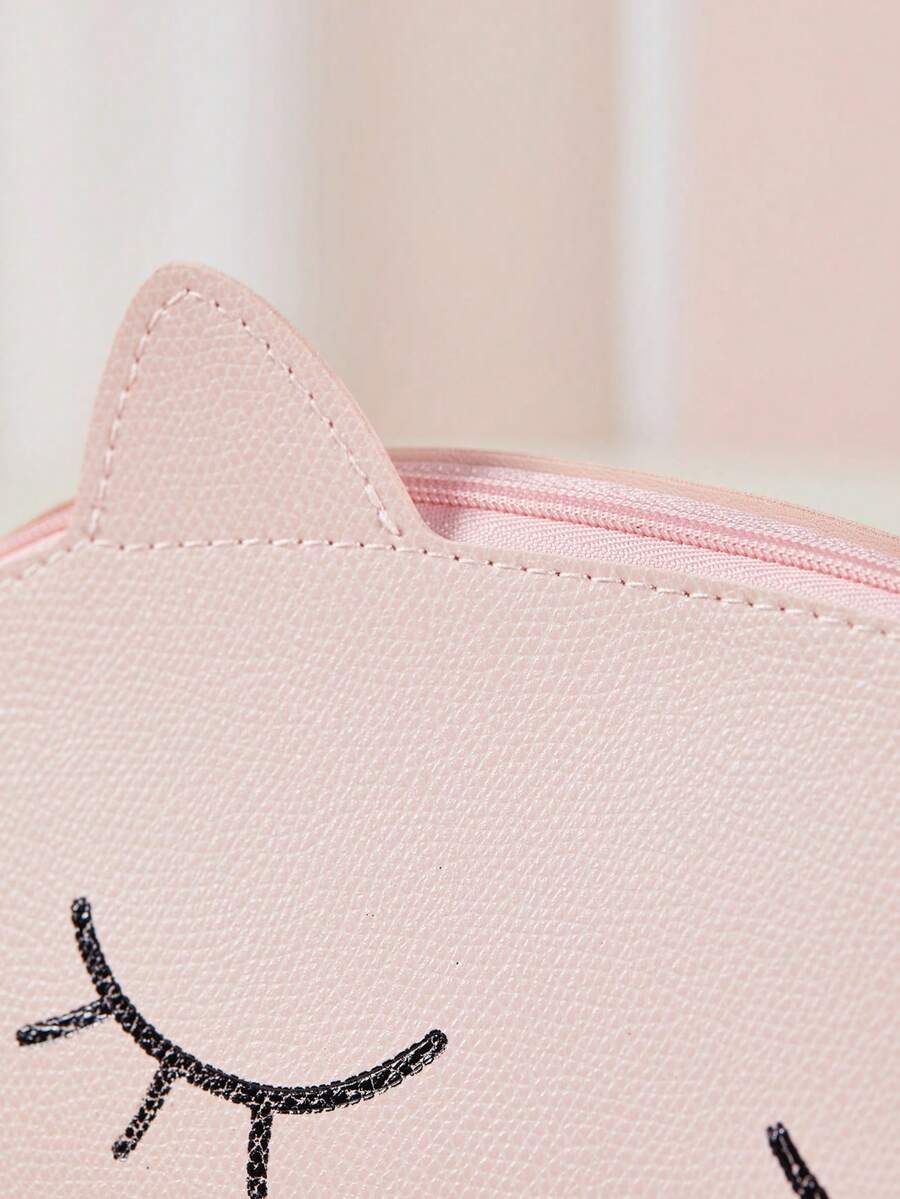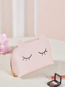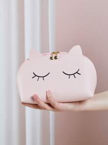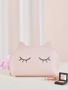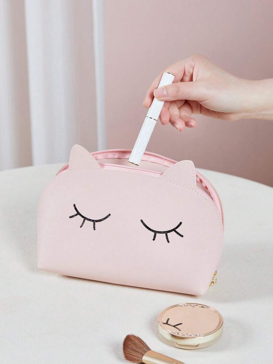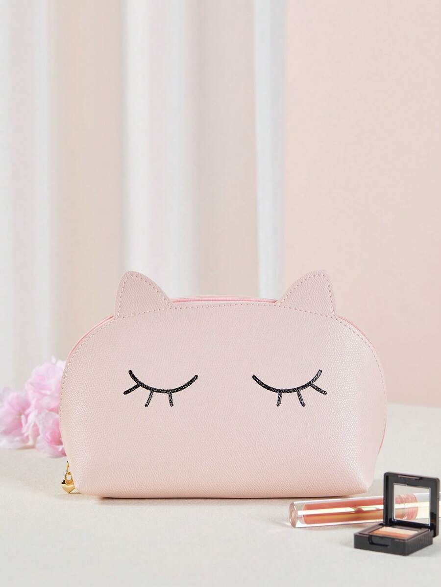 1pc Large Pink PU Cat Design Creative Funny Cutensil European Style Japanese Style Nordic Minimalist Modern Elegant Daily Waterproof Makeup Bag Travel Makeup Bag Cosmetic Bag For Women And Girls Storage Makeup Organizer Makeup Case