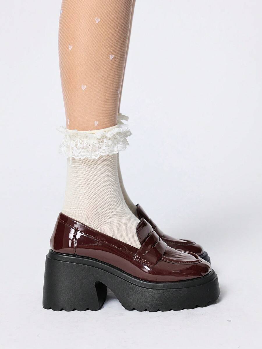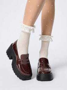 English Style Women's Black Leather Loafers, Thick Sole Platform Shoes, Fashion Chunky Heel, Spring/Autumn 2023