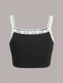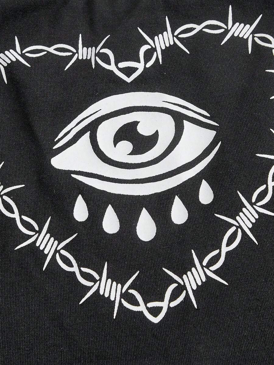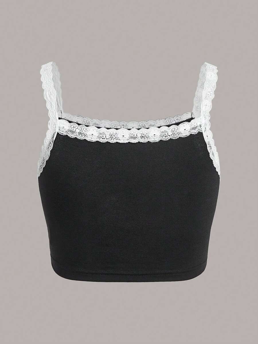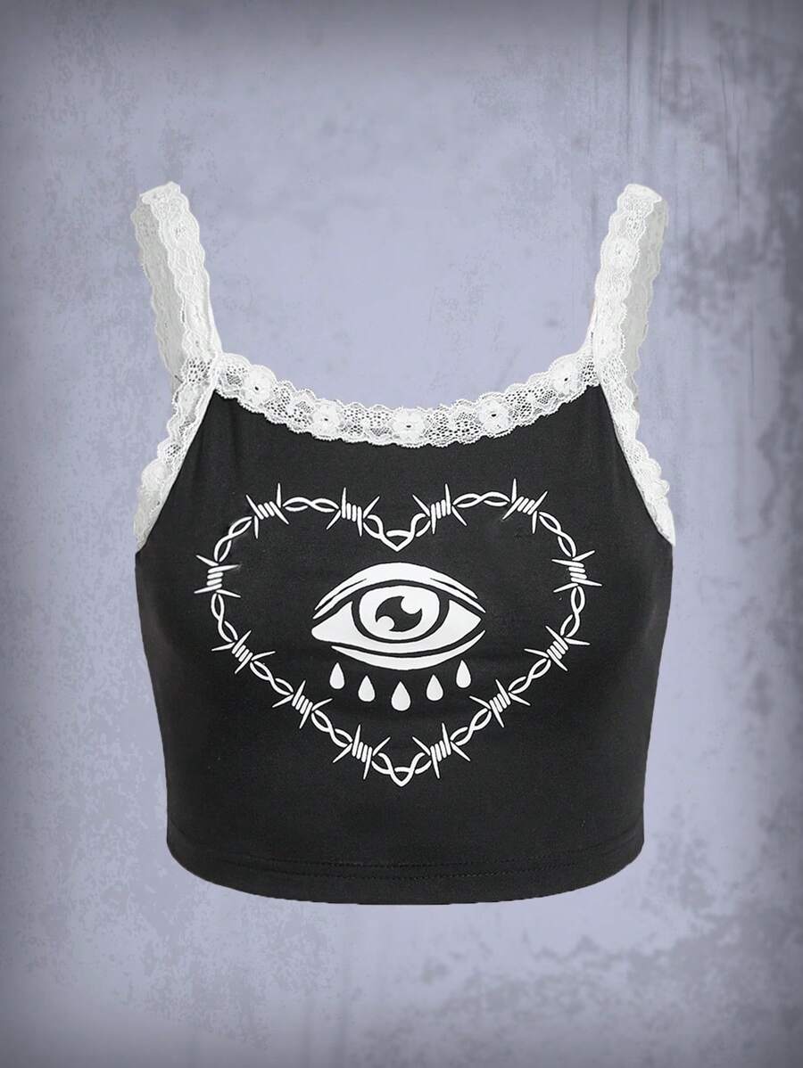 Deniart Eye Print Contrast Lace Cami Top