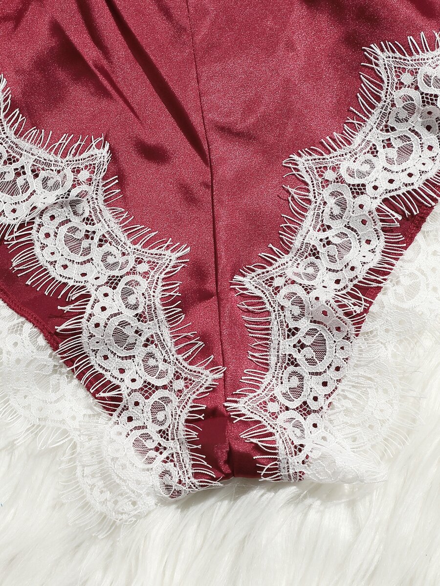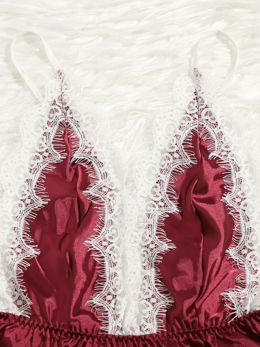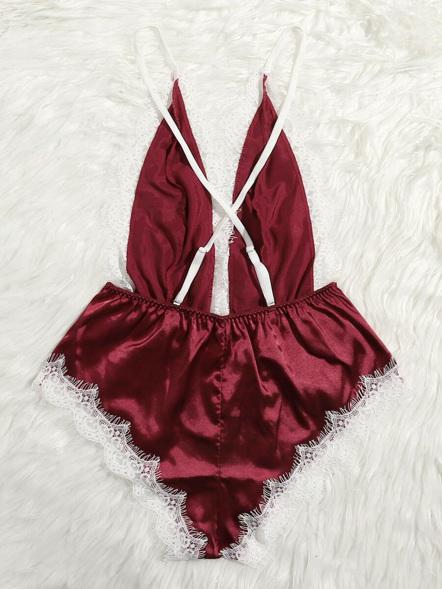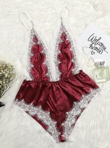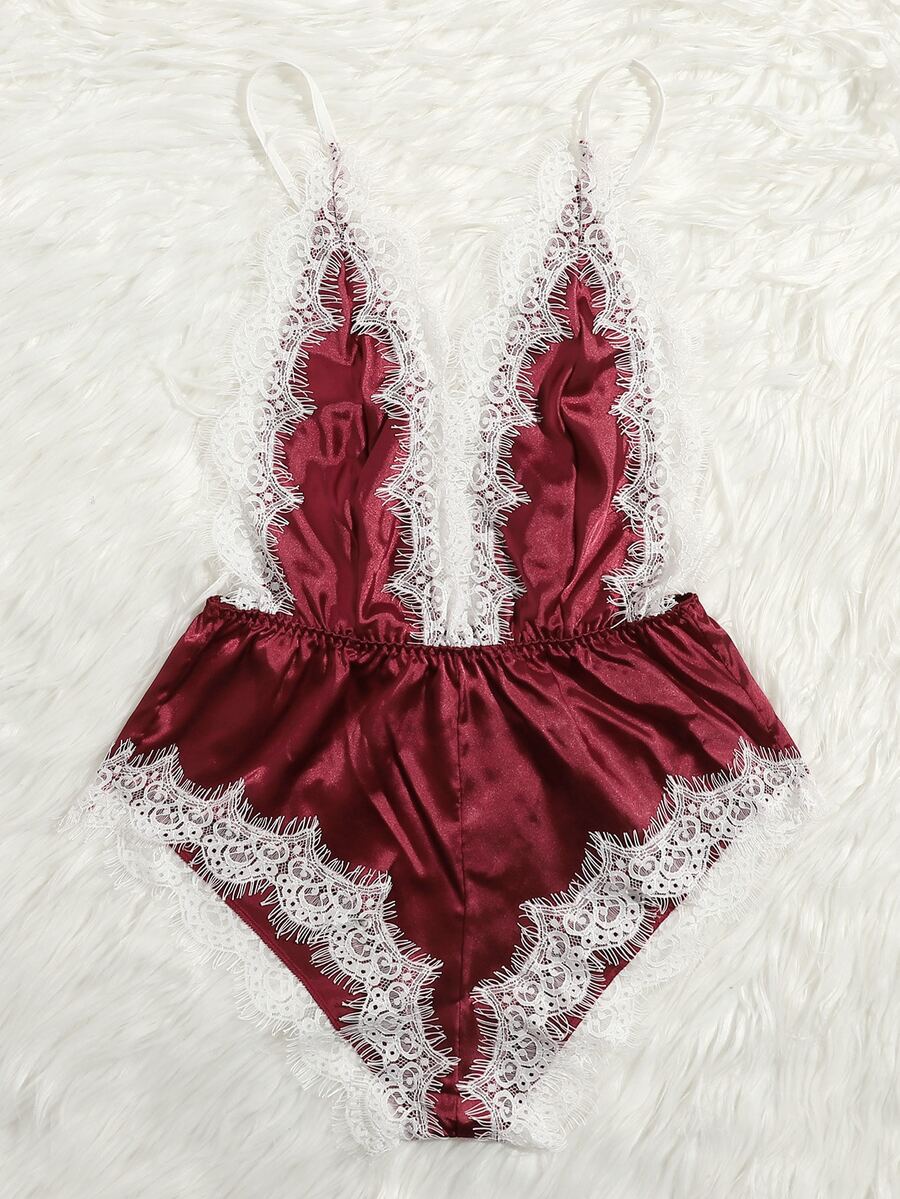 Eyelash Lace Satin Teddy Lingerie