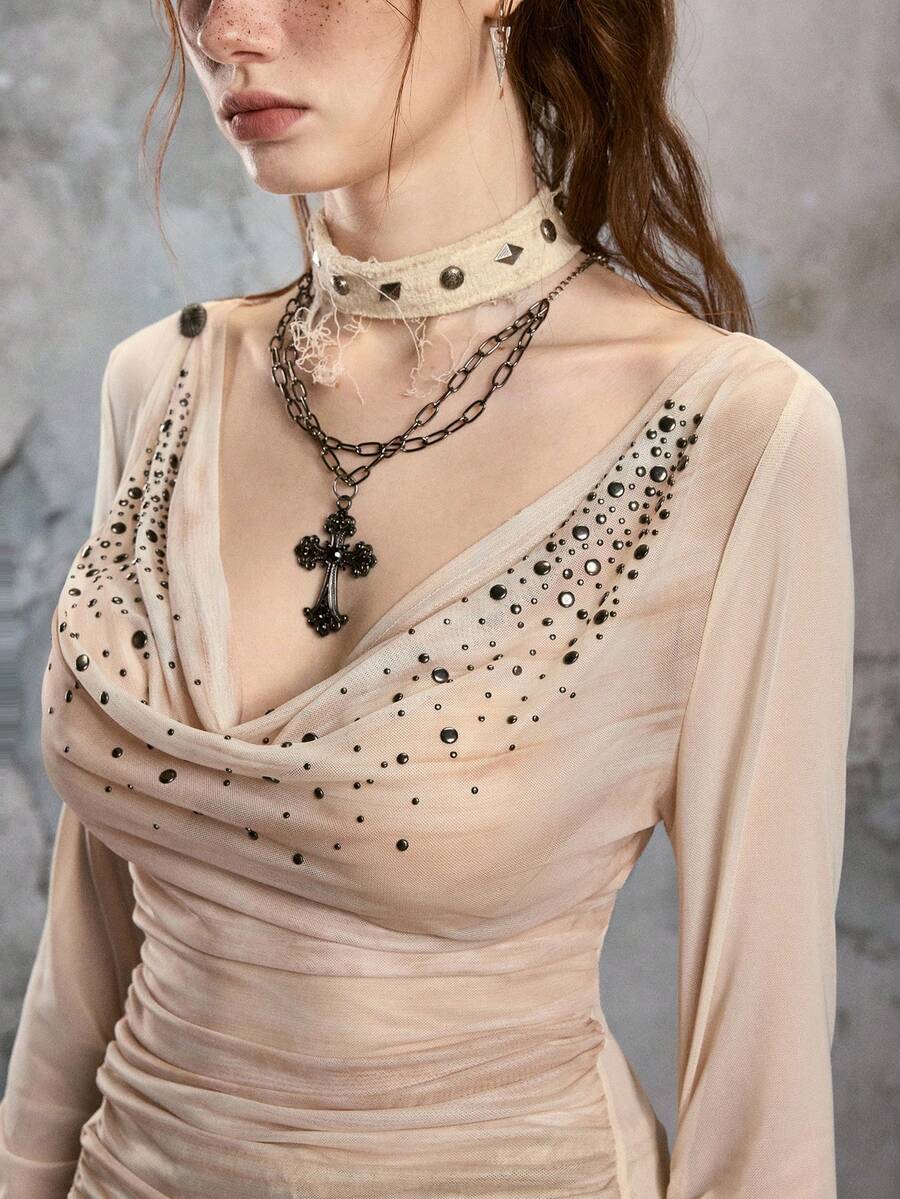 Fairycore Fairy Asymmetric Shoulder Rhinestone Embellished Vintage Style Blouse For Women