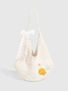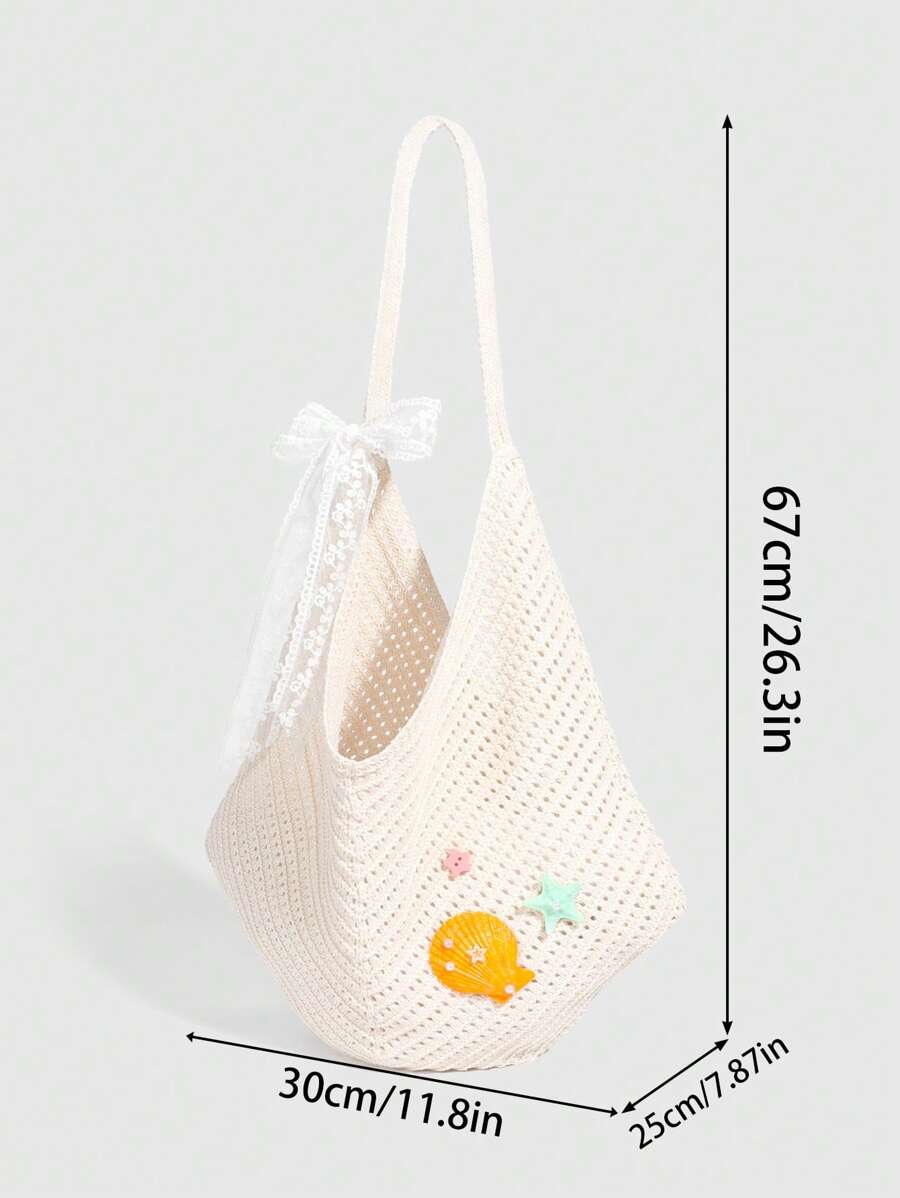 Fairycore 1pc Tropical Shiny Hollow Out Knitted Tote Bag, Beach Vacation Style Shoulder Bag
