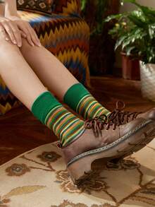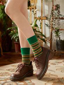 Fairycore 1pair Women Striped Pattern Fashion Crew Socks