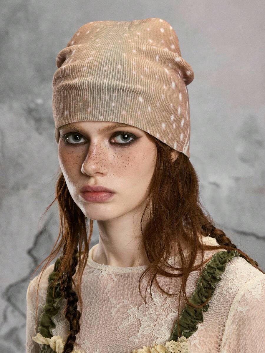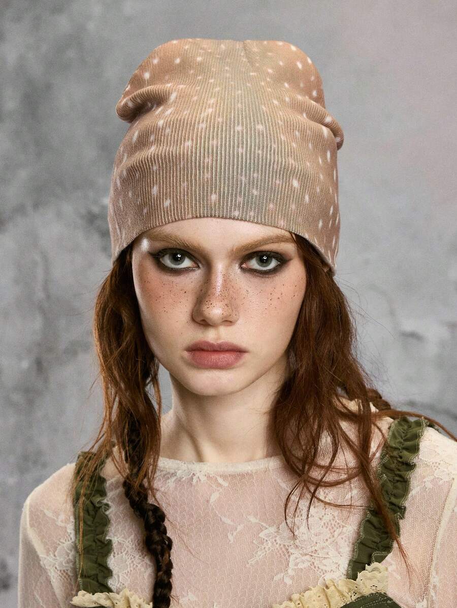 Fairycore 1pc Brown Deer Pattern Animal Print Retro Beanie Hat, Stylish & Minimalist, Suitable For Daily Wear, School, Dates, Shopping, Christmas, Halloween And More