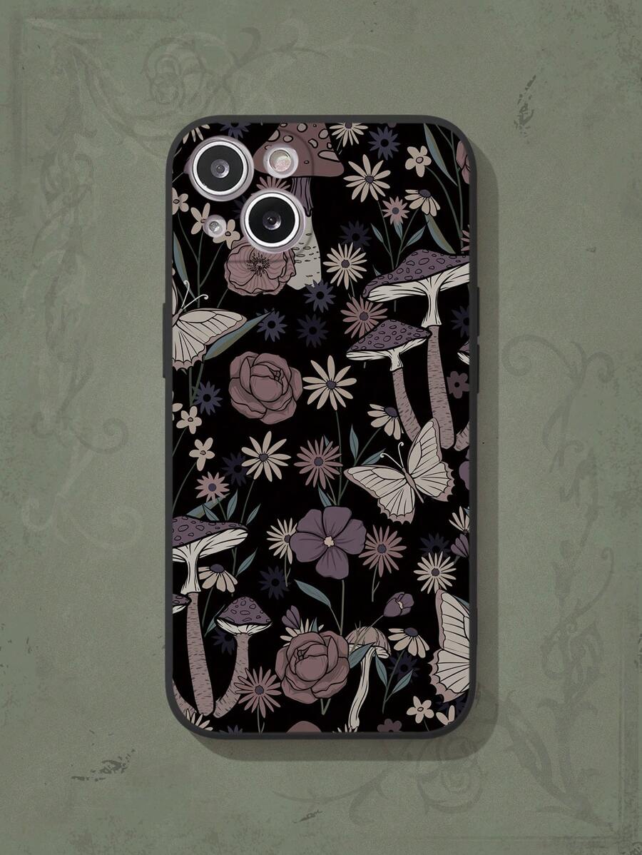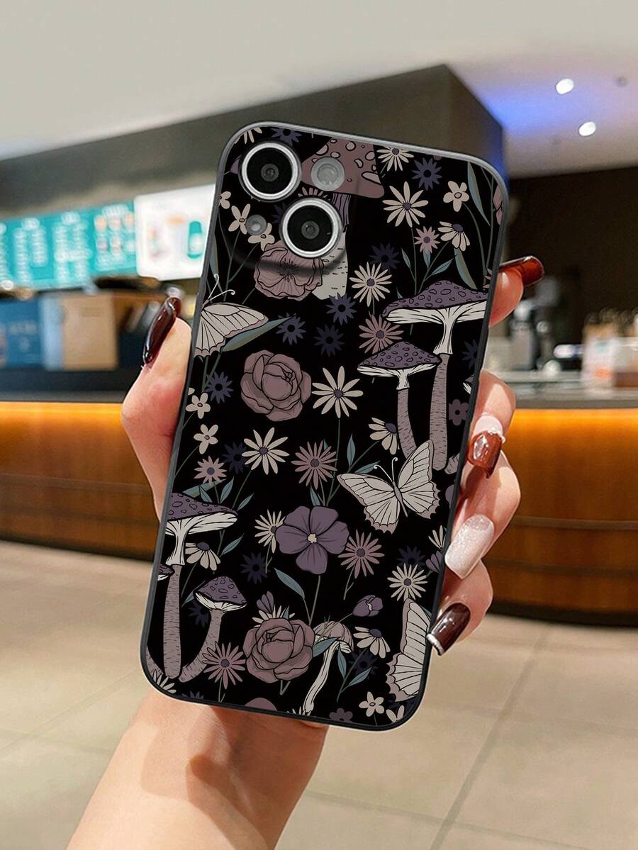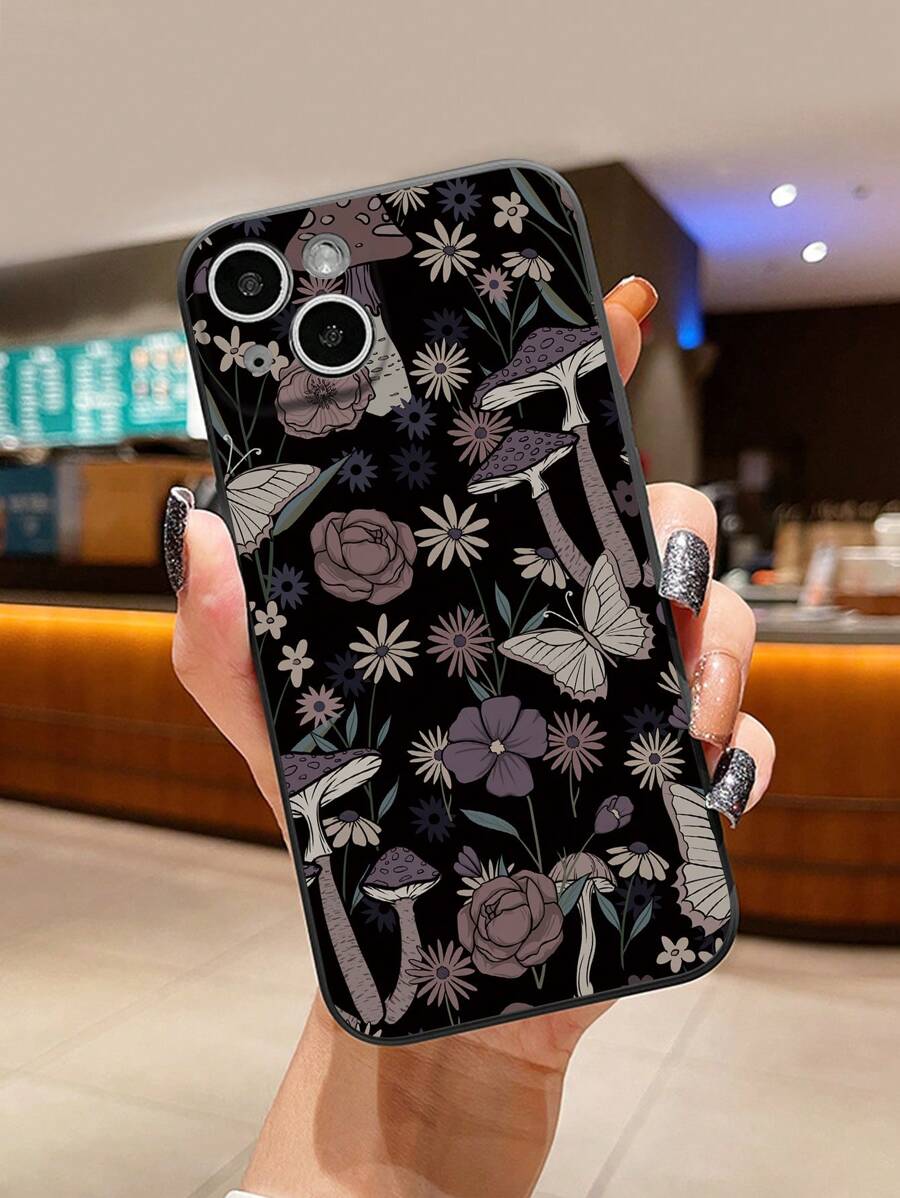 Fairycore 1pc Butterfly & Mushroom Graphic TPU Phone Case Compatible With IPhone