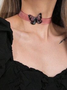 Fairycore 1pc Gothic Style Dark 3d Butterfly Adjustable Choker Necklace