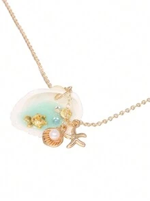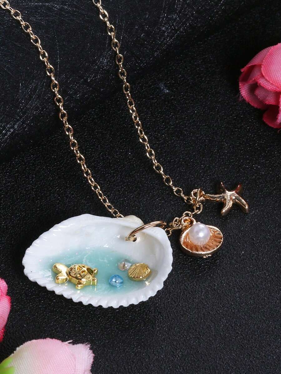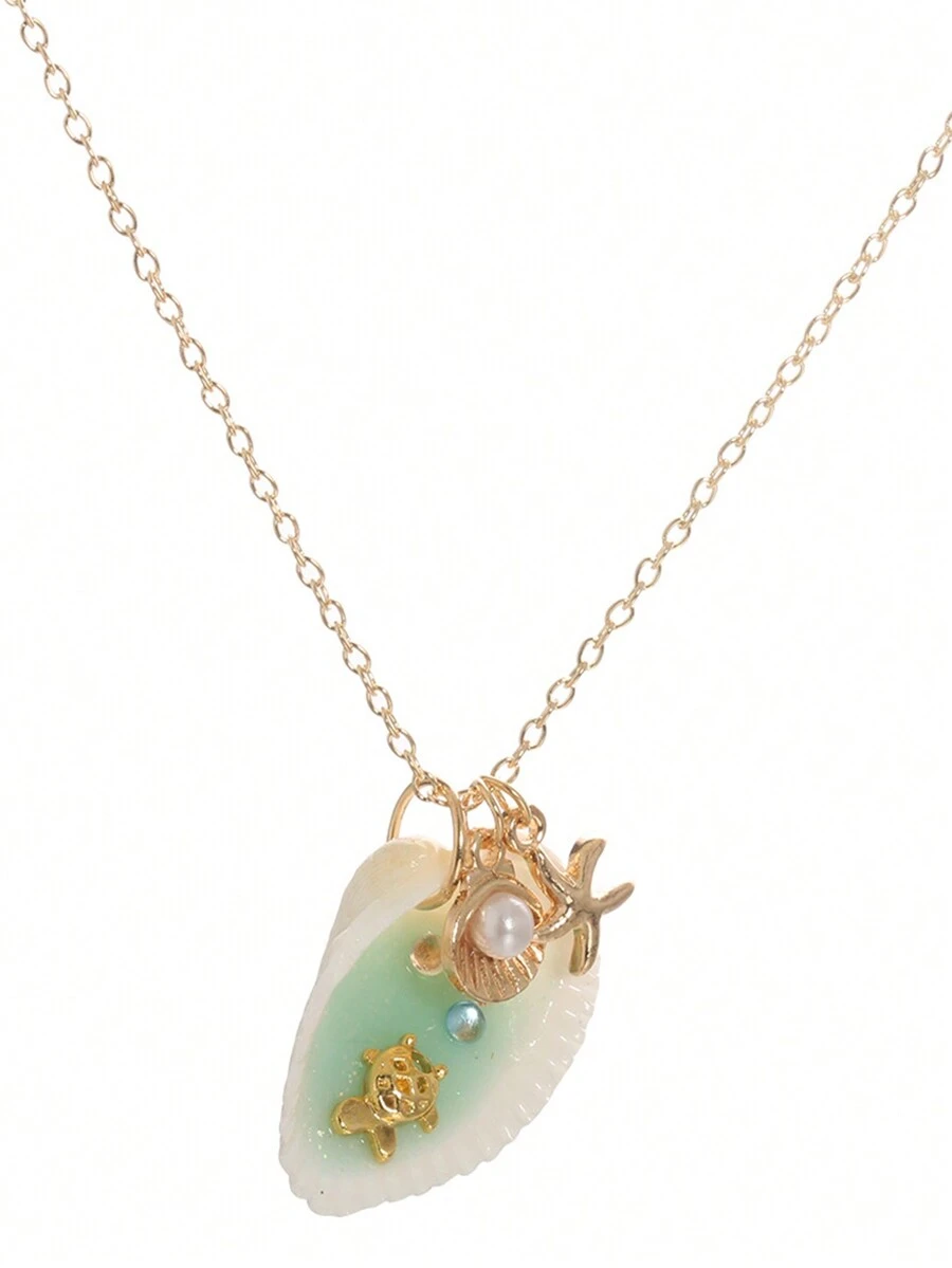 Fairycore 1pc Pearl & Shell Sea Turtle Pendant Necklace