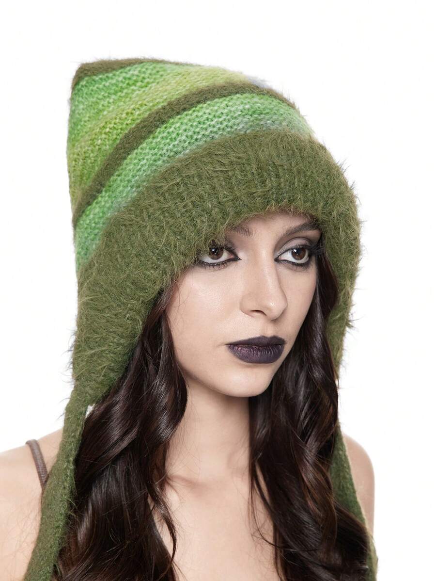 Fairycore 1pc Rainbow Striped Patchwork Fleece Ear Warmer Hat, Korean Style Knit Braided Beanie For Women, Warm And Flattering