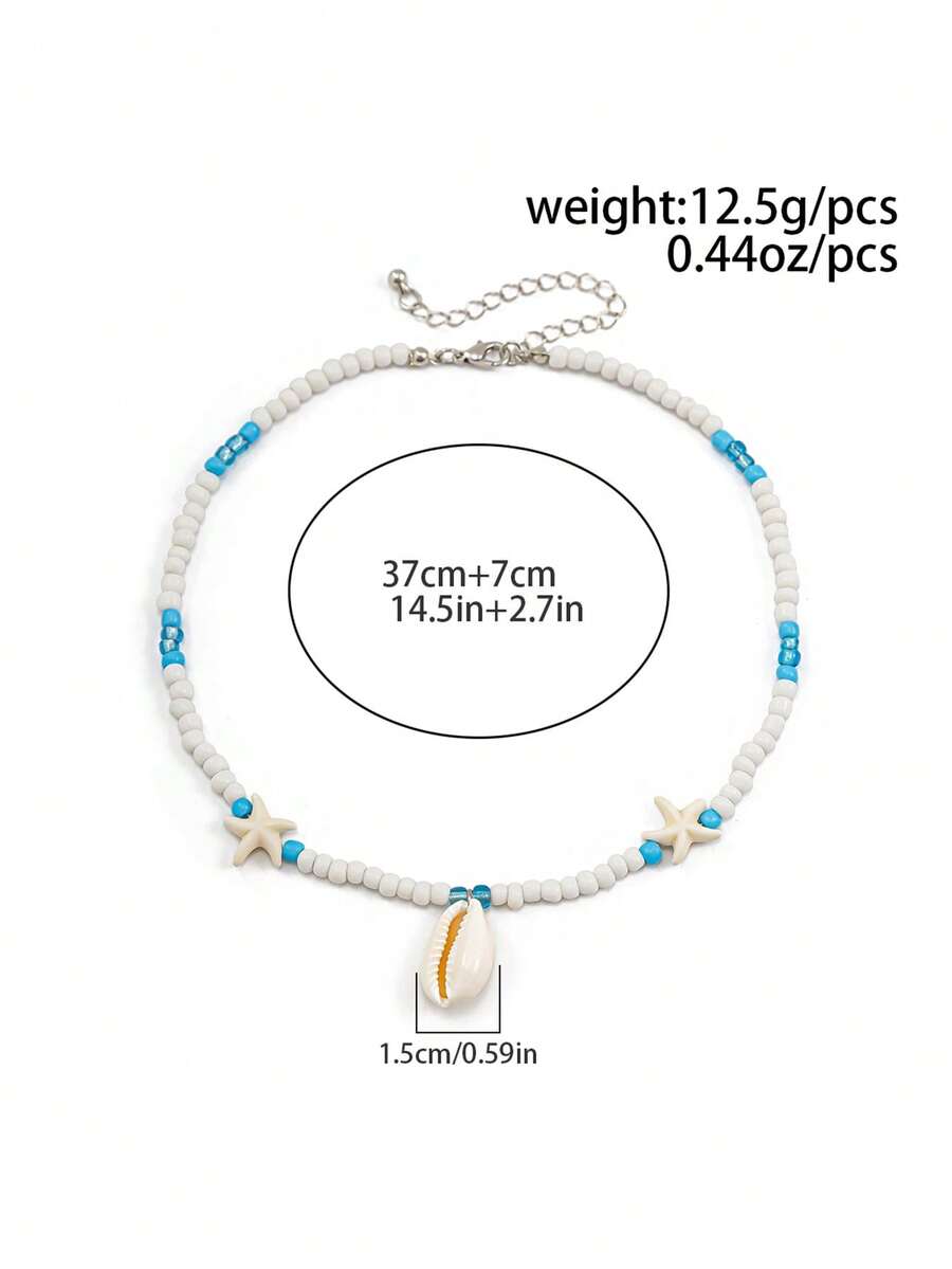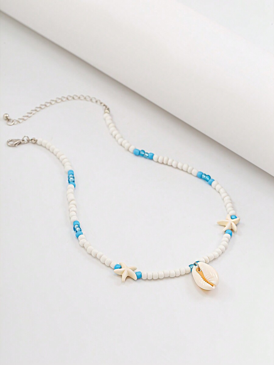 Fairycore 1pc Stylish Ocean Style Seashell Pendant & Starfish Beaded Necklace, Beach Jewelry