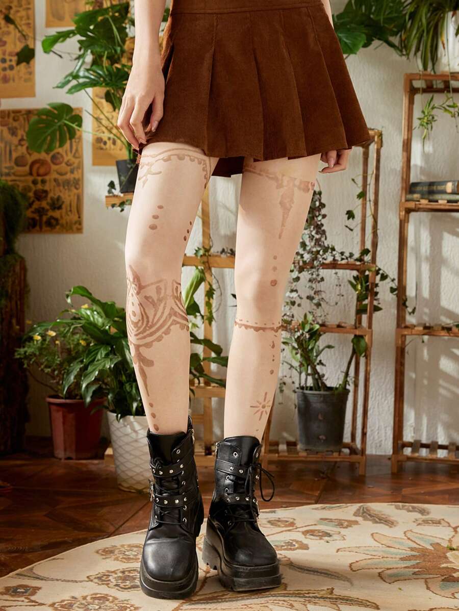 Fairycore 1pc Women Sun & Moon Pattern Tights