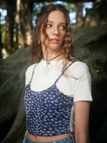 Fairycore 2 In 1 Floral Print Tee