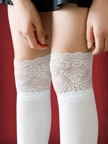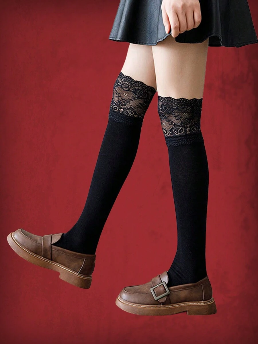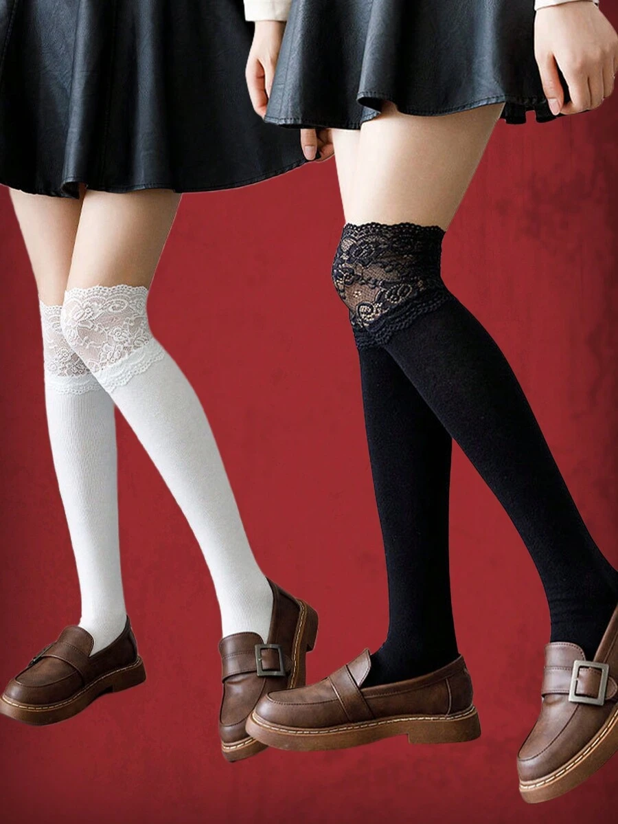 Fairycore 2 Pairs Lace Border Over Knee High Socks