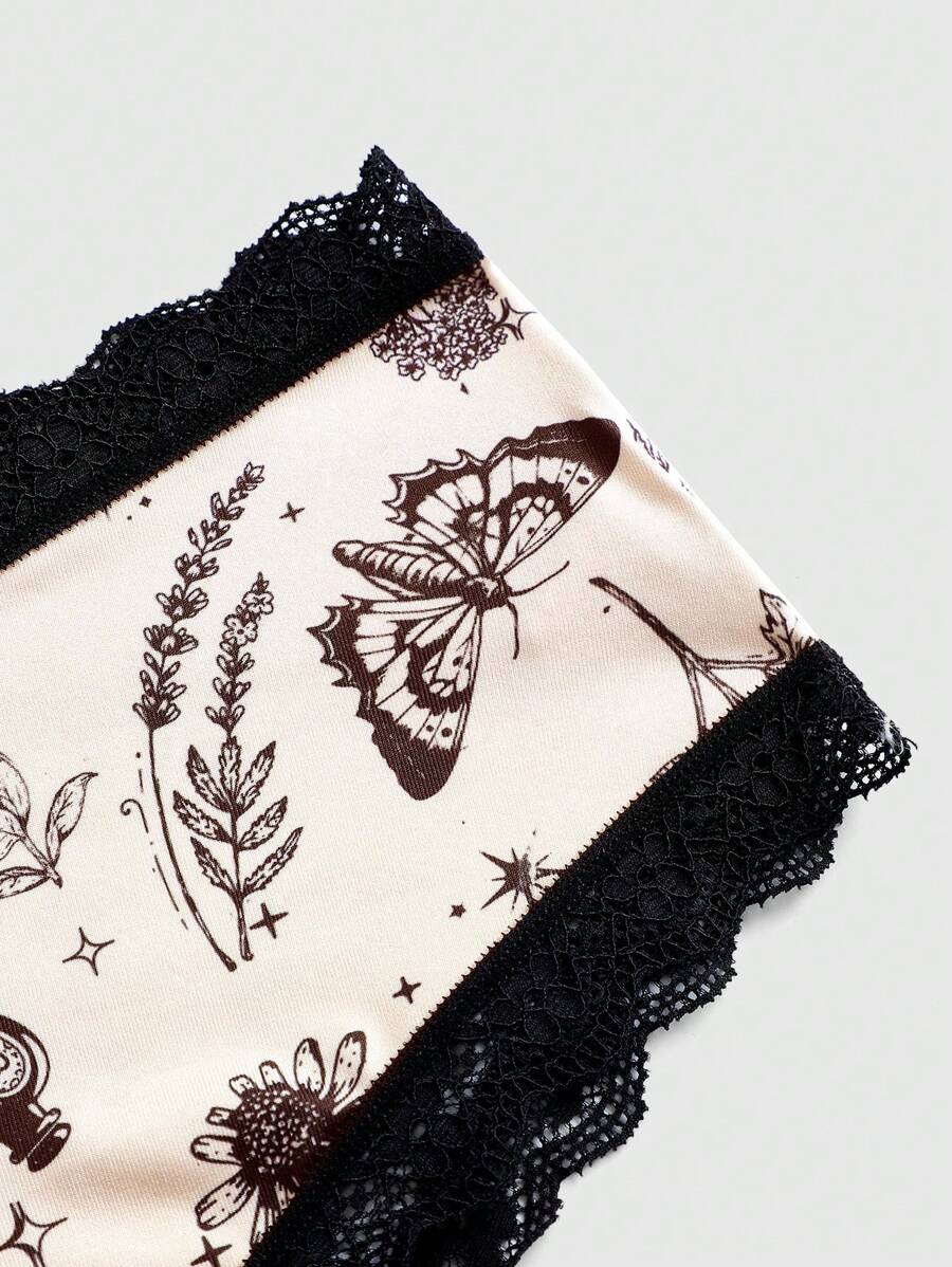 Fairycore 3pcs/Set Fairy, Butterfly, Plant, Mushroom, Star & Moon Print Underwear Briefs