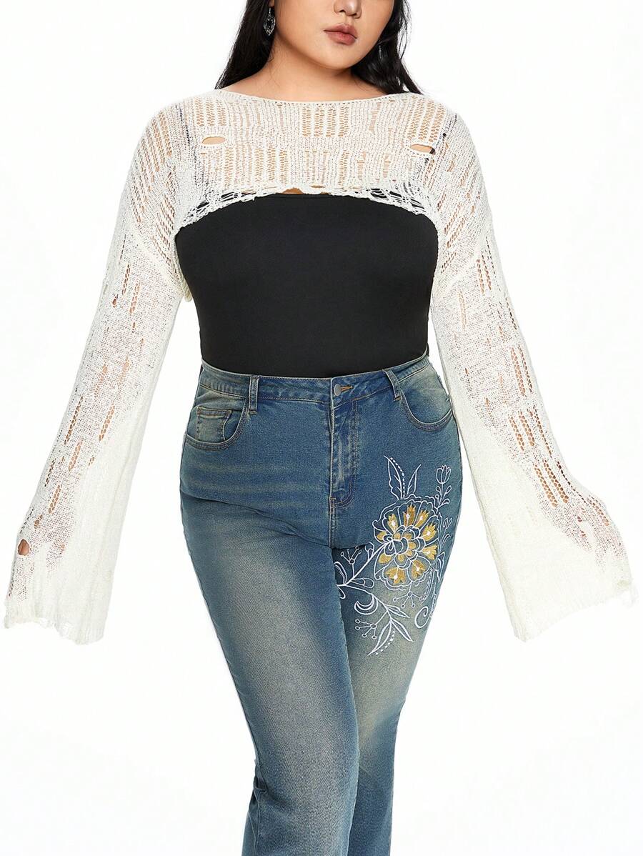 Fairycore Apricot Vintage Style Plus Size Shredded Flared Sleeve Sweater
