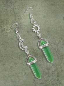 Fairycore 1pair Fashion Copper Alloy Sun & Moon Decor Drop Earrings For Women For Daily Decoration