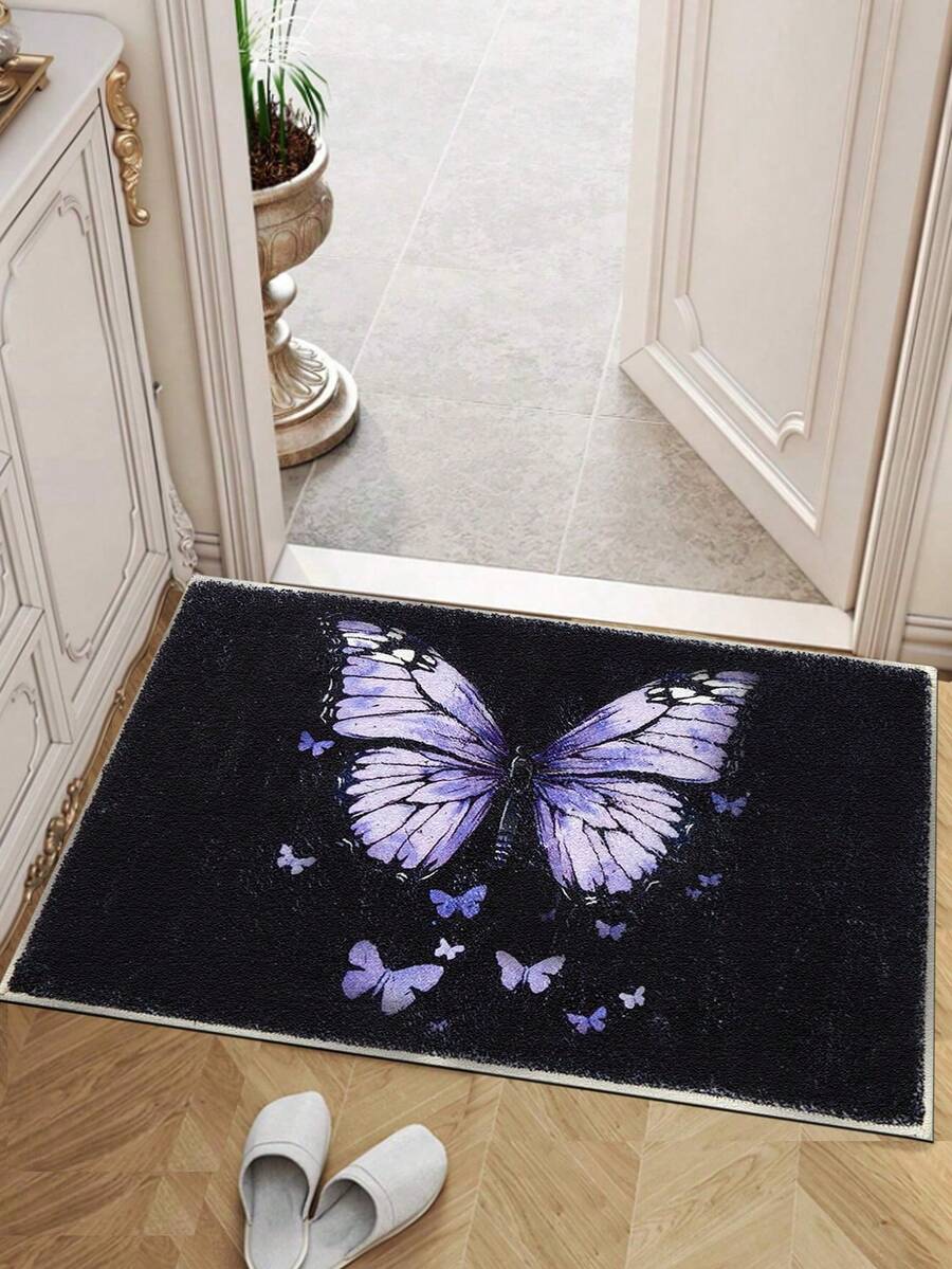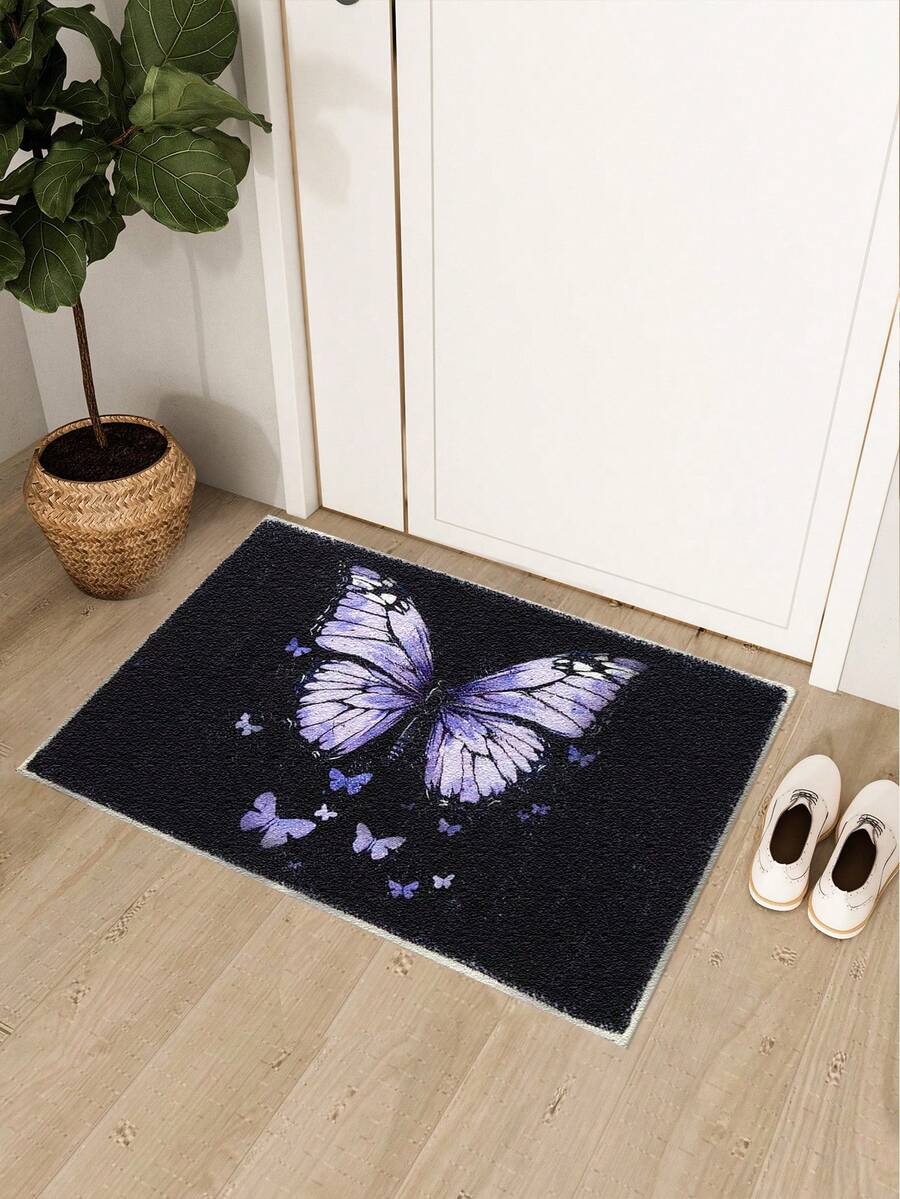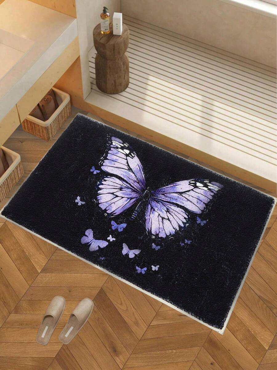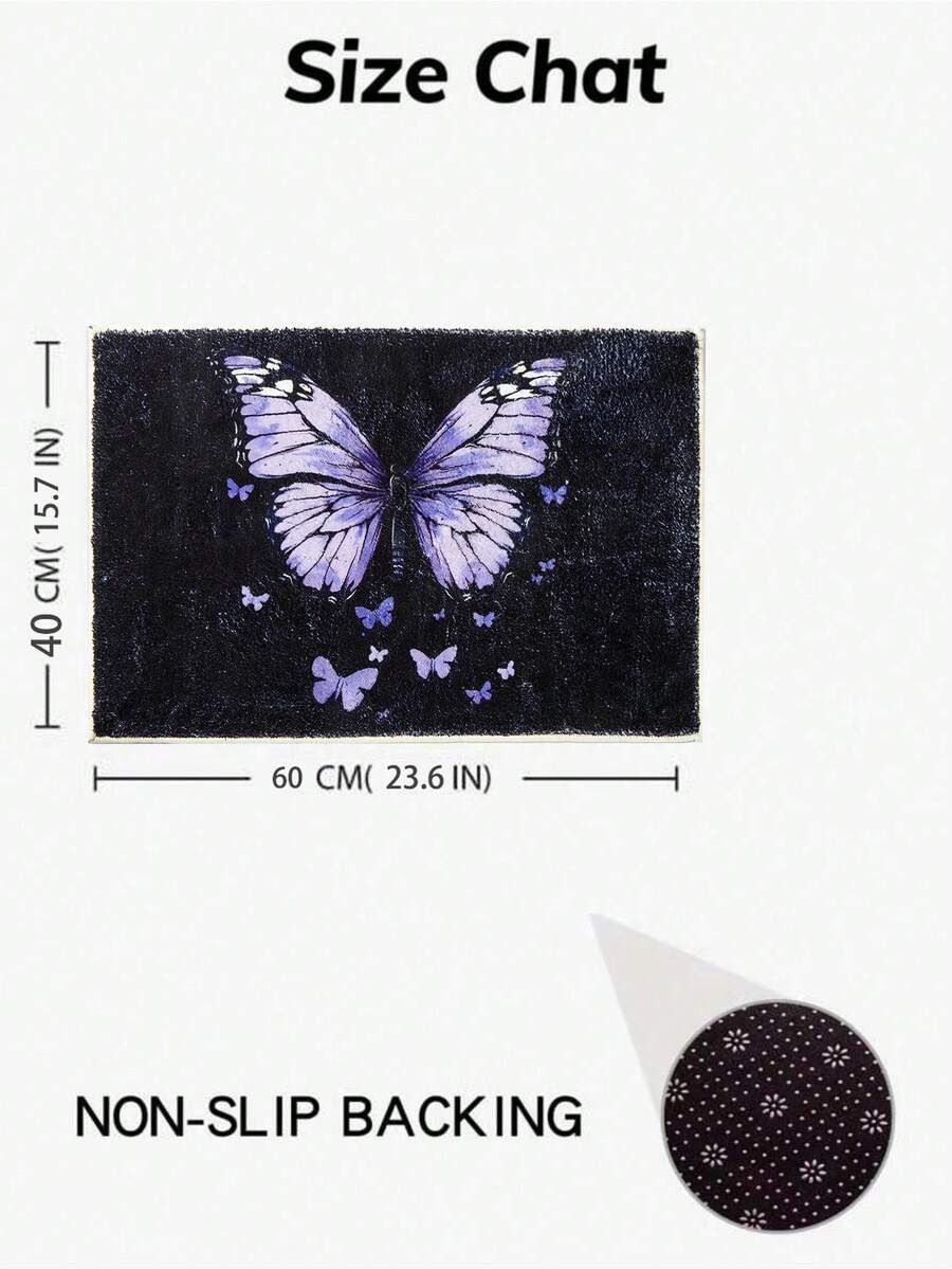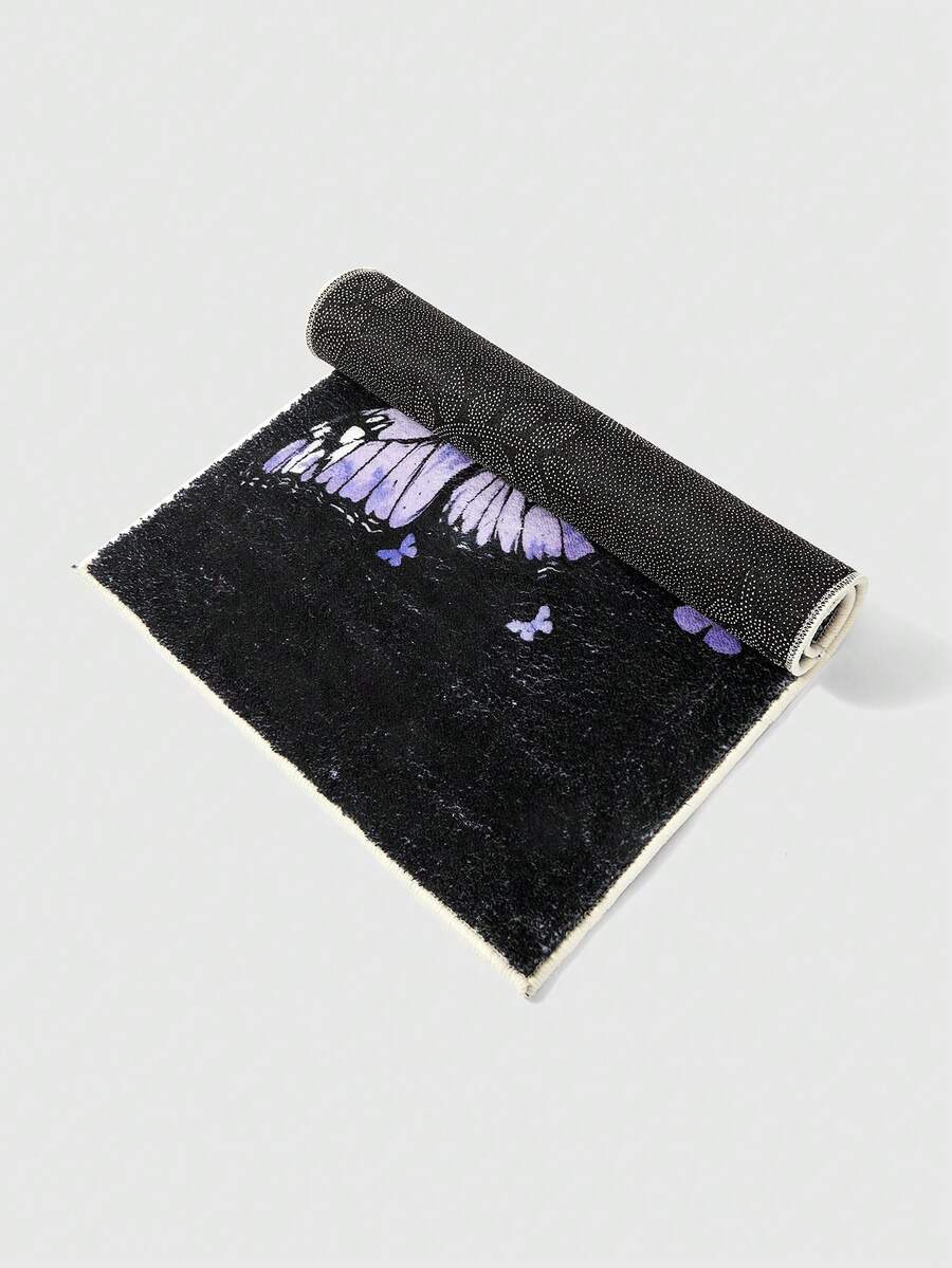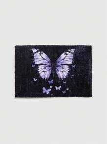 Fairycore Dark Purple Butterfly Patterned Cartoon Bear Decoration Thick Flannel Blanket