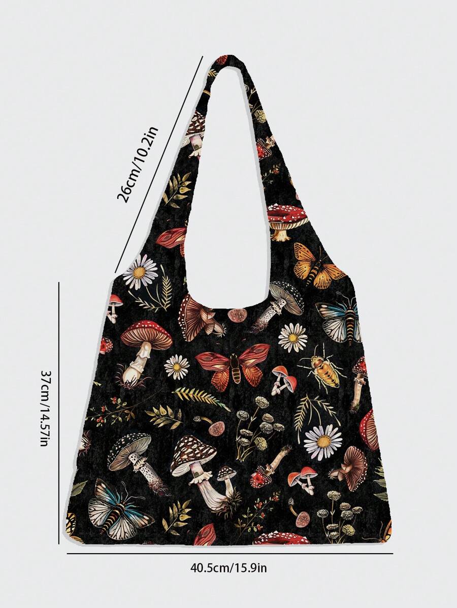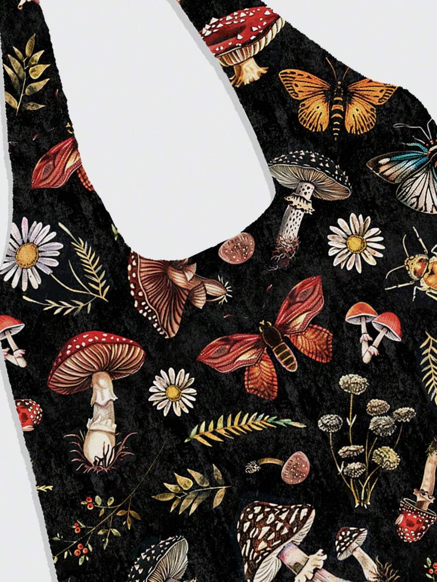 Fairycore Foldable Mushroom And Butterfly Printed Ladies' Tote Bag, Tote Bag Large, Best Fall Ideas, Butterfly Bag Valentines
