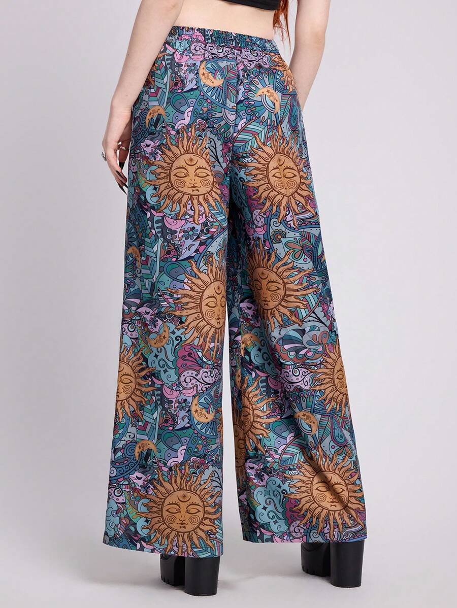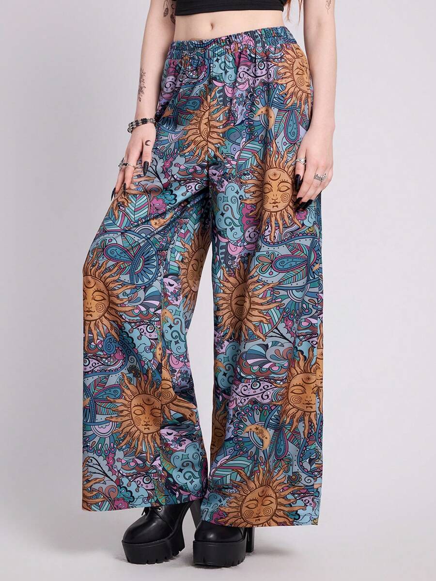Fairycore Hippie Vacation Vintage Sun Print Loose Straight Leg Casual Women Pants