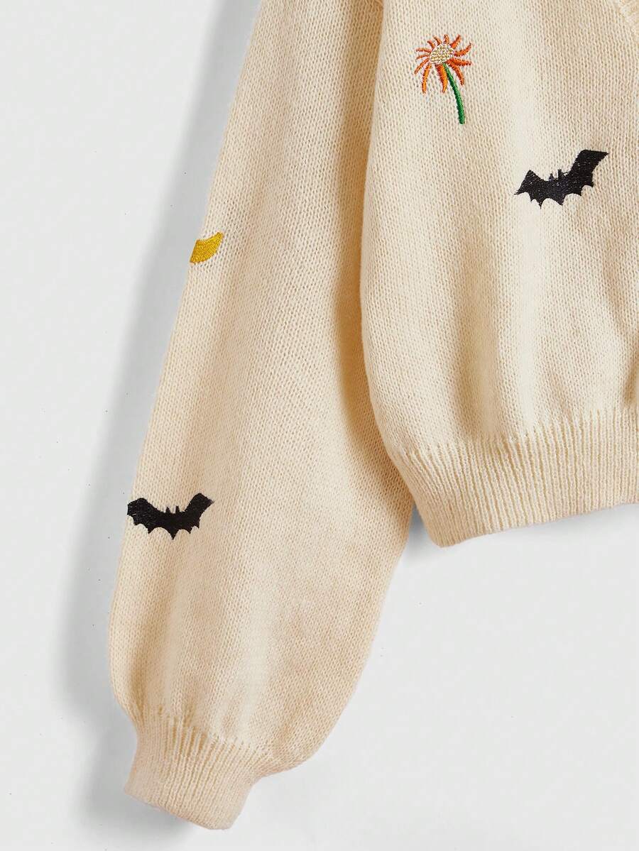 Fairycore Moon & Ghost Embroidery Single-breasted Plus Size Cardigan Sweater