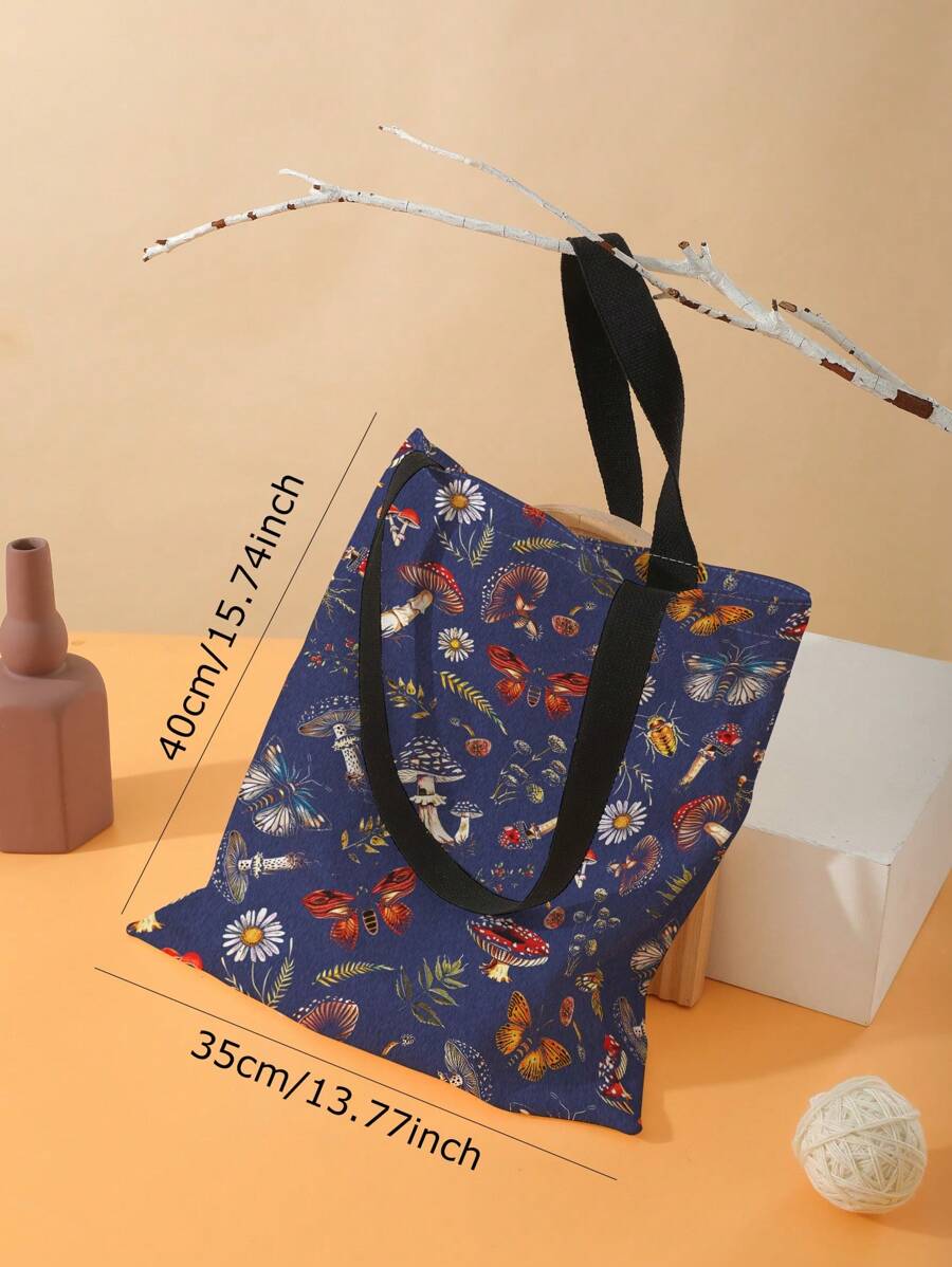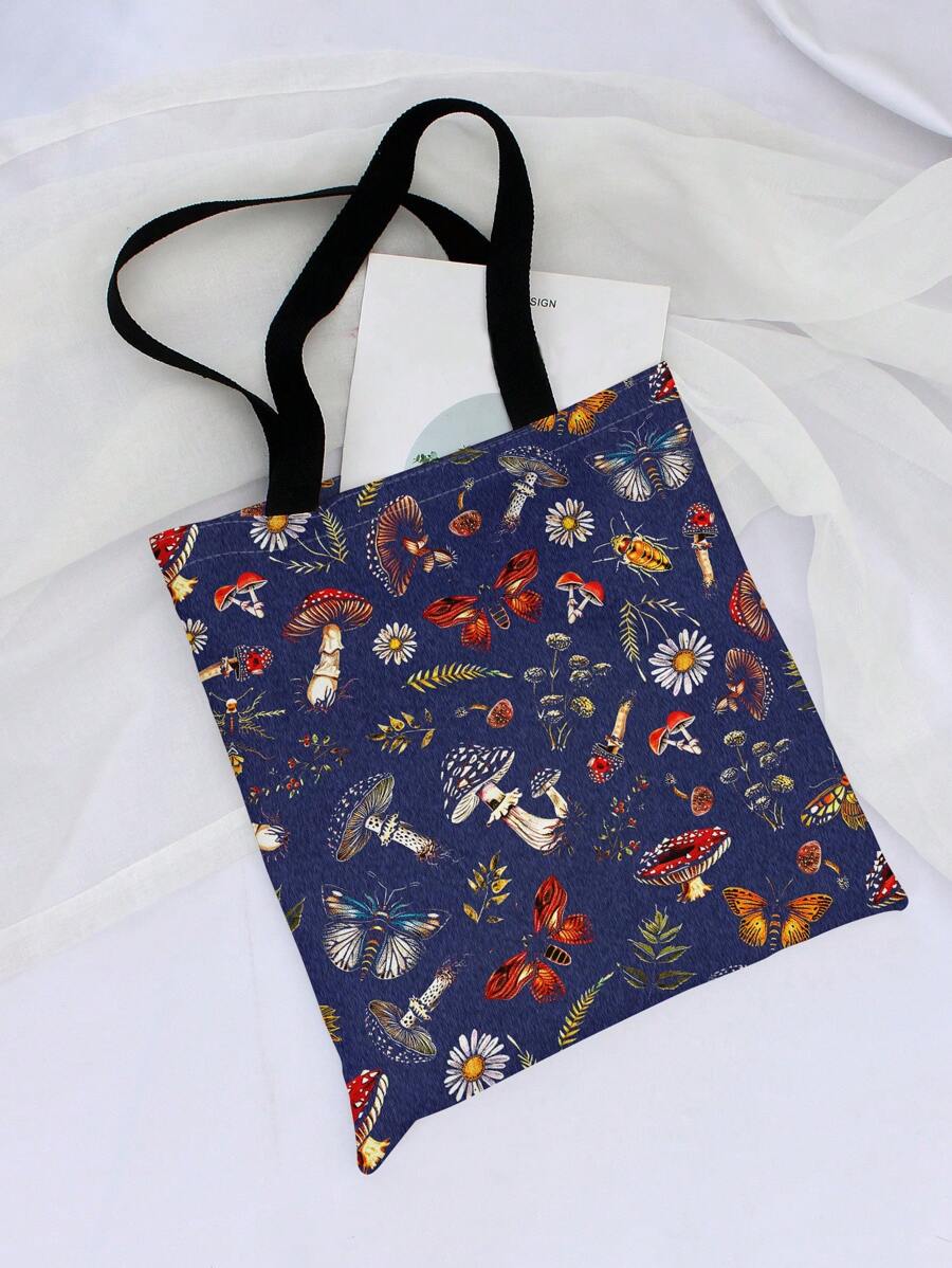 Fairycore Mushroom, Butterfly & Insect Pattern Double-Sided Printed Canvas Tote Bag