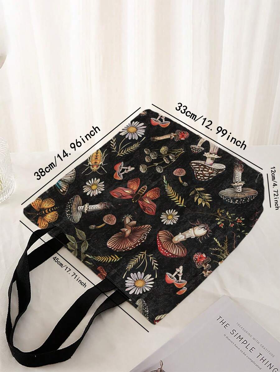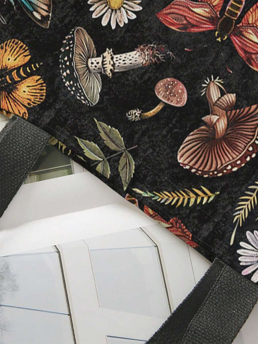 Fairycore Mushroom Butterfly Insect Printed Double Sided Canvas Tote Bag, Butterfly Bag