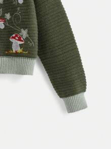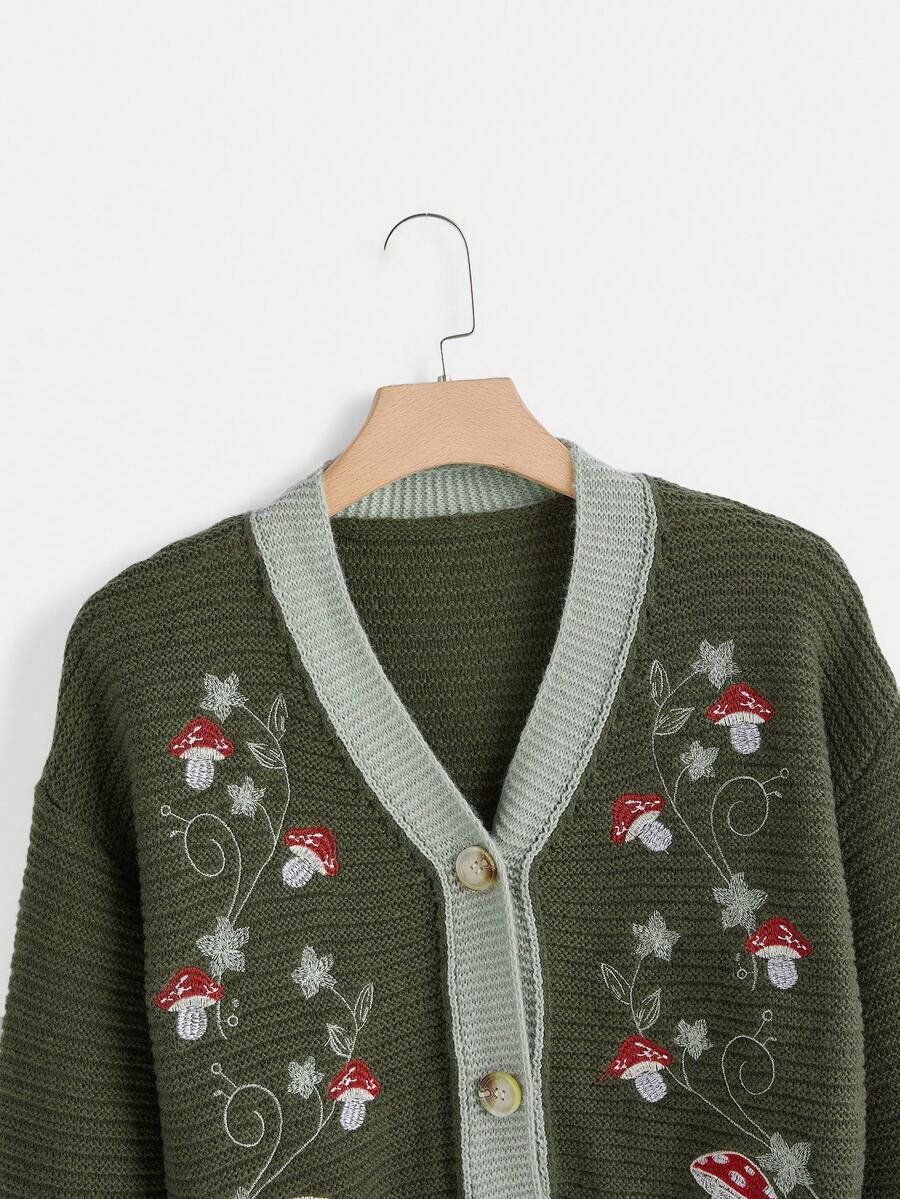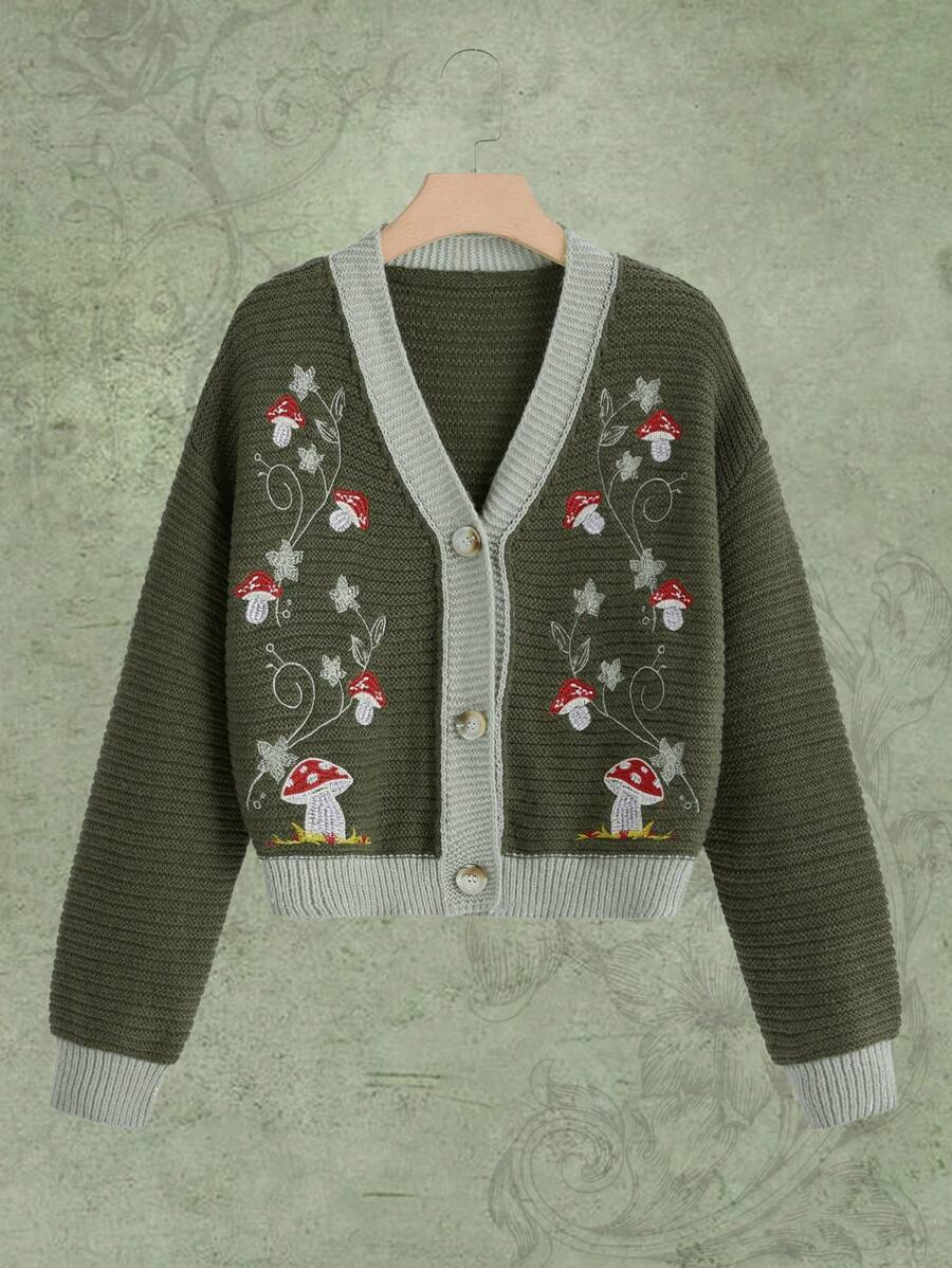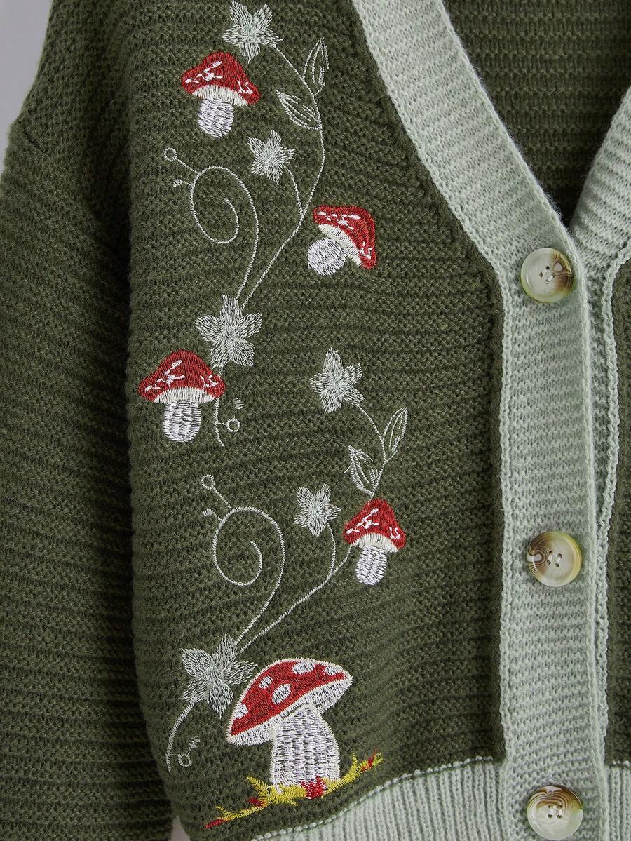 Fairycore Mushroom Embroidery Contrast Binding Cardigan