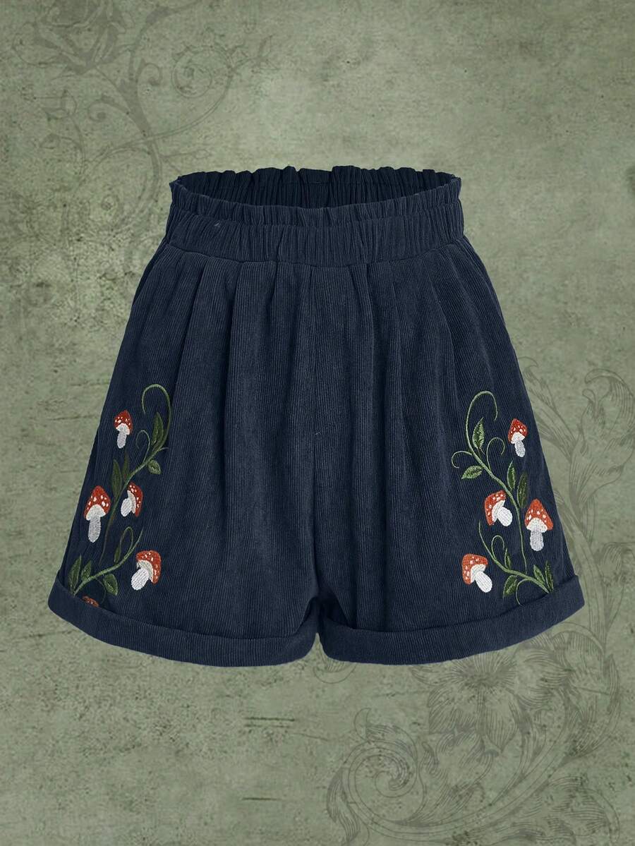 Fairycore Mushroom Embroidery Corduroy Shorts