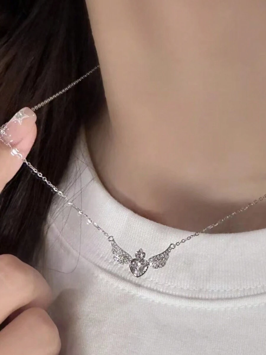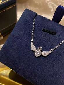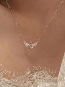 Fairycore 1pc Fashion Iron Alloy Rhinestone Wing Decor Necklace For Women For Dating Gift