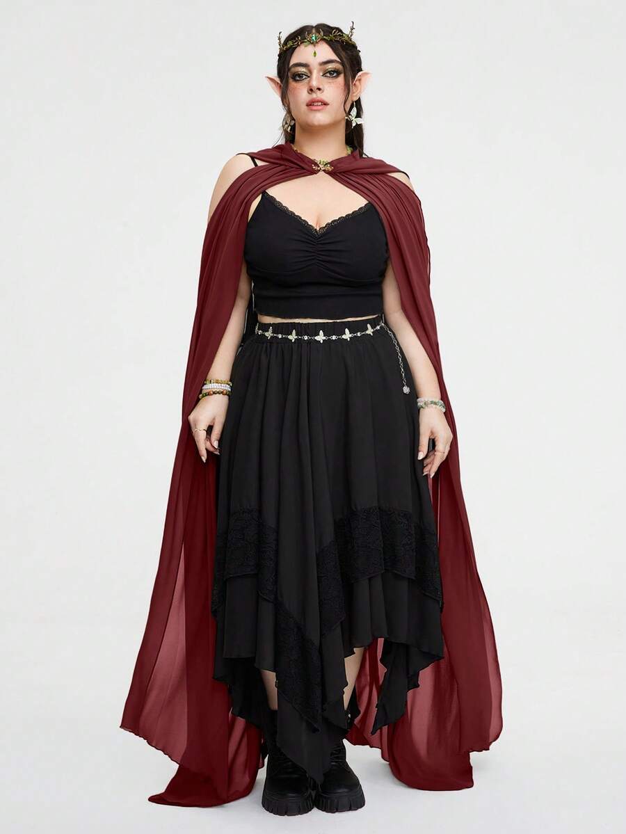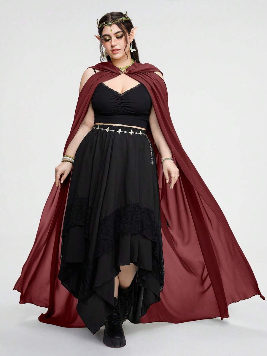 Fairycore Plus Size Women's Hooded Forest Queen Vintage Cloak
