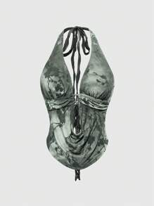 Fairycore Sexy Deep V-Neck Backless Tie-Dye Plant Print Flocked Top For Women