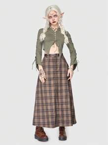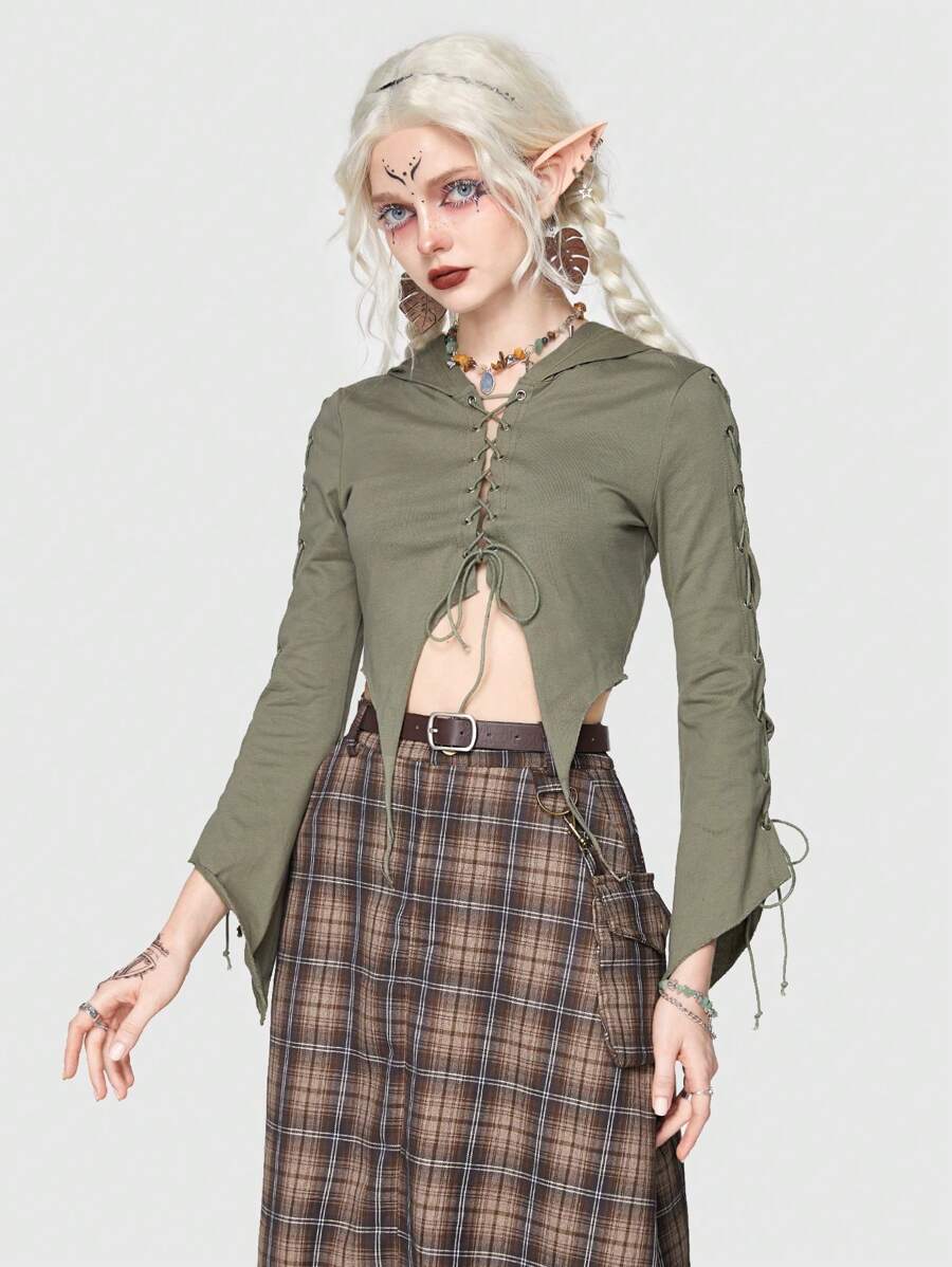 Fairycore Solid Tied Front Crop Hooded Tee