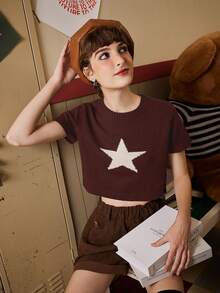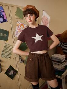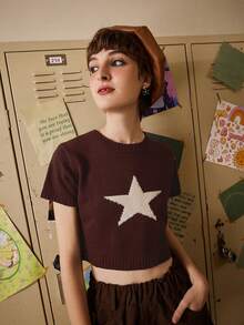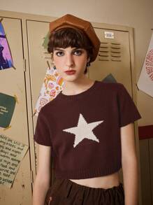Fairycore Star Pattern Crop Knit Top
