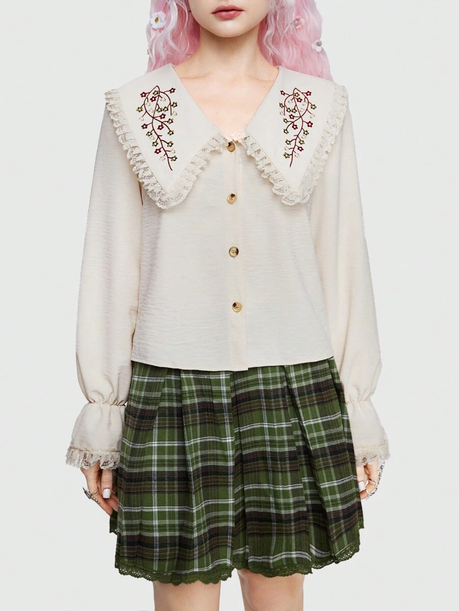 Fairycore Women'S Plant Embroidered Bell Sleeve Shirt