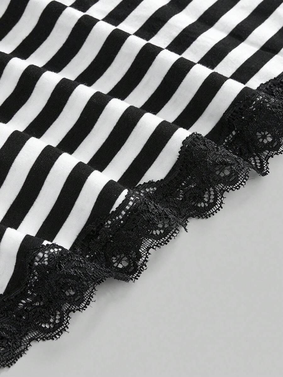Fairycore Women Summer Contrast Lace Striped Sleeveless Casual Tank Top