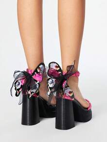 Fairycore Women's Fashionable & Elegant Bow Decor High Heel Sandals