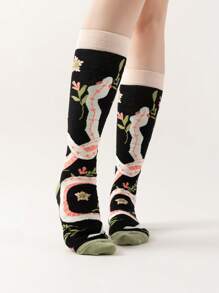 Fairycore Women's Floral Pattern Comfortable Knee-High Socks, Suitable For Everyday Wear