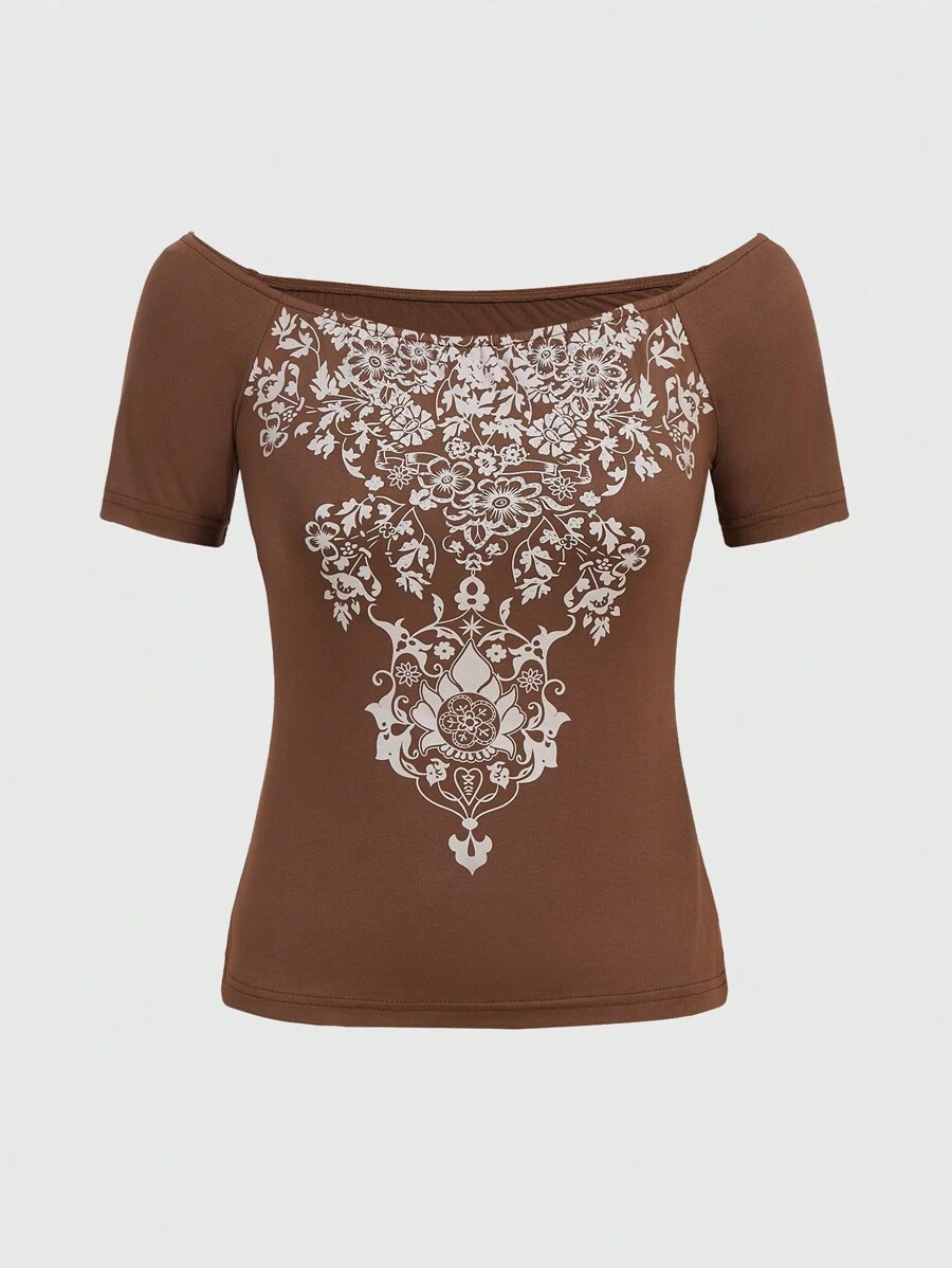 Fairycore Women's Off-shoulder Floral Print Tee With Raglan Sleeves