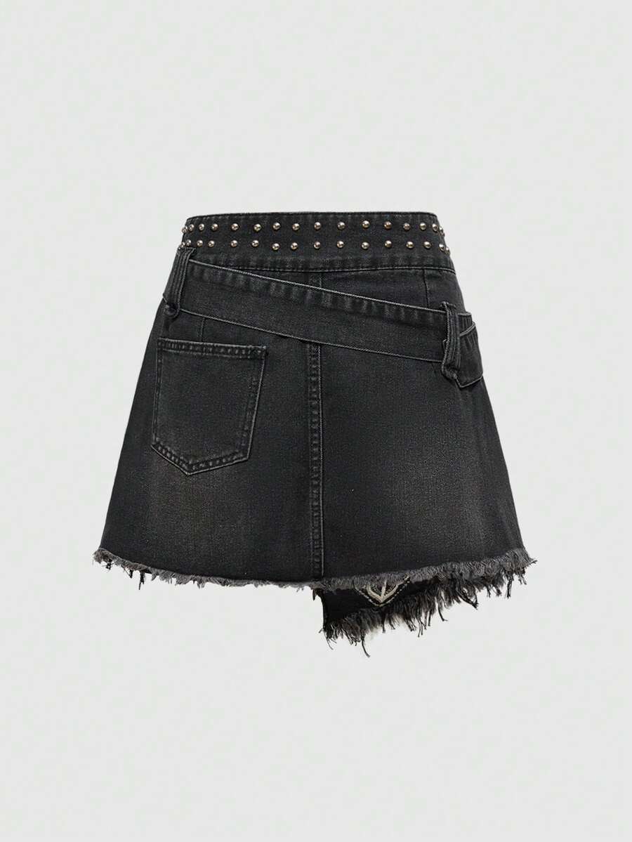 Fairycore Women's Punk Dark Emo Style A-Line Cross Stud Denim Mini Skirt