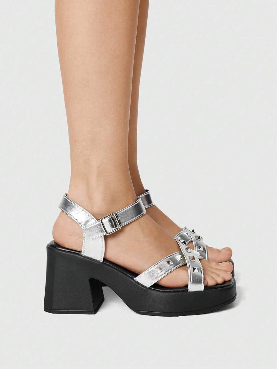 Fairycore Women's Summer Open Toe Sandals With Criss-Cross Strap, Single Buckle Chunky Heeled Punk Shoes, High Heels For Party Dresses, Formal Wear, Office