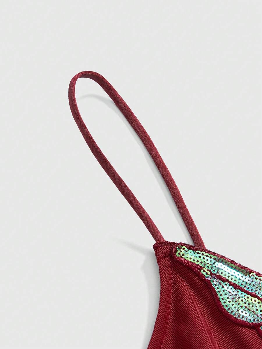 Fairycore Women's Summer Sexy Sequin Embroidery Sheer Mesh Sling Top