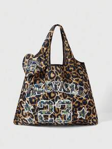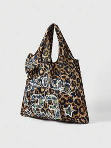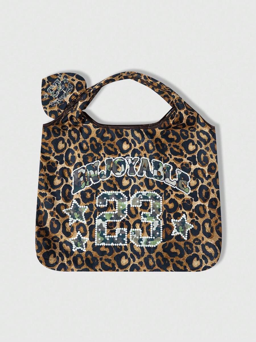 Grunge Punk Fashionable Leopard Print Numeric Pattern Large Capacity Foldable Tote Bag With Coin Purse, Portable Shopping Bag