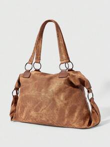 Grunge Punk Fashionable Rivet Decor Large Capacity Tote Bag For Commuting